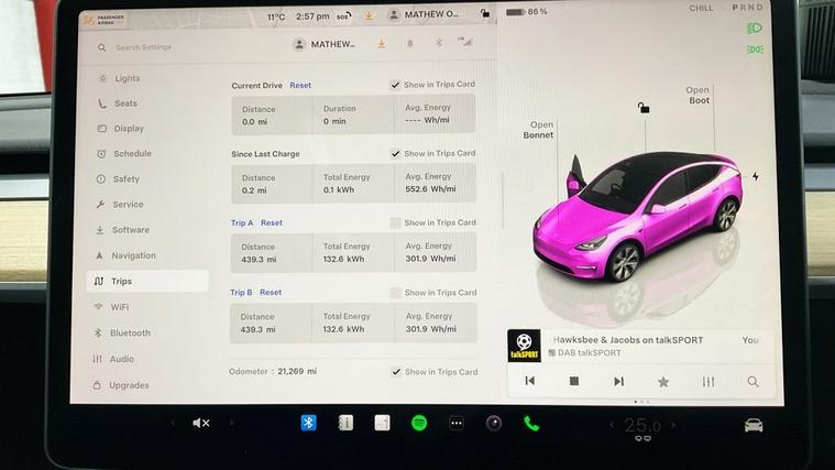 This 2022 Tesla Model Y presents an exceptional ownership proposition with its single owner and remarkably low mileage of just 21, 269 miles. As an electric vehicle, it offers a substantial new battery range of 283 miles, ensuring your journeys are both efficient and extensive. This Model Y comes with an MOT valid until December 2026 and boasts a clear vehicle history check, providing peace of mind. Notable features include advanced LED headlights for superior visibility, keyless entry and driving for ultimate convenience, and blind spot monitoring to enhance safety on every trip. Inside, youll appreciate the dual zone climate control for personalised comfort and heated rear seats, perfect for colder days. Experience exhilarating performance with the Tesla Model Ys impressive 0-60mph acceleration in just 6.6 seconds, a testament to its electric power. This rapid acceleration, combined with its impressive 283 mile new battery range, positions this vehicle as a standout choice compared to other electric SUVs. The combination of its advanced technology, low mileage, and single owner history makes this 2022 Tesla Model Y a truly compelling option for those seeking a premium electric driving experience.