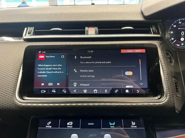 This 2019 Land Rover Range Rover Velar D180 R-Dynamic SE boasts a pristine history, having been owned by just one individual and passing a clear vehicle history check. This stylish SUV features a 2.0 litre Euro 6 diesel engine paired with a four wheel drive system, offering a towing weight of 2400 kg. Inside, youll find a host of premium features including Matrix LED headlights with signature daytime running lights, automatic headlights, and a rear view camera for enhanced parking assistance. The R-Dynamic SE trim also includes the convenience of Android Auto and an impressive 825W Meridian Surround Sound System. The performance of this Range Rover Velar is equally compelling, with an acceleration of 0-60mph in just 8.5 seconds. These highlights demonstrate how this particular vehicle stands out from others in its class, offering a refined and capable driving experience. Its combination of sophisticated technology, luxurious comfort, and robust capability makes it a distinguished choice for any discerning driver.