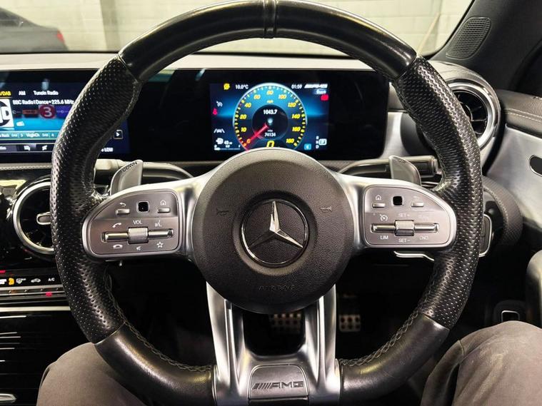 This 2021 Mercedes Benz CLA35 AMG boasts a clear vehicle history check, offering peace of mind alongside its impressive performance. This four wheel drive model features a potent 2.0 litre petrol engine and is Euro 6 compliant. Inside, you will find comfort and convenience with heated front seats and THERMOTRONIC luxury automatic climate control for a perfect cabin temperature. Enjoy your favourite music through the Mercedes Benz sound system, delivering 100W from six speakers, and stay connected with seamless smartphone integration including Apple CarPlay and Android Auto, all managed via Bluetooth. The CLA35 AMG truly stands out with its remarkable acceleration, achieving 0 to 60 miles per hour in just 4.9 seconds. This swift performance indicates a superior driving experience compared to many other vehicles in its class. With its MOT valid until October 2026, this AMG trimmed Mercedes Benz is ready for your next journey, combining exhilarating driving dynamics with the refined luxury expected from the brand.