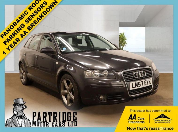 HPI CLEAR, 10 PREVIOUS SERVICES, MOT UNTIL 13.10.2026, SERVICE UNTIL 12.01.2027, PARKING SENSORS, PANORAMIC ROOF, CLIMATE CONTROL, LEATHER TRIM, ALLOY WHEELS, 5 DOORS, MANUAL, 3 MONTHS WARRANTY, 1 YEAR AA BREAKDOWN, AA DEALER **2007 Audi A3 1.8 TFSI Sport: Pan Roof, Leather, Long MOT! AA Approved!** ******** A fantastic, highly specified example of the ultimate premium hatchback! This is the 2007 Audi A3 in the highly desirable Sport specification, finished in the sophisticated and timeless **Dolphin Grey**. This vehicle boasts an outstanding maintenance record with **10 Previous Services**, proving it has been mechanically cherished throughout its life. The Sport trim delivers a truly premium driving experience, elevated even further by incredible factory upgrades including a stunning **Panoramic Roof** that floods the cabin with natural light, luxurious **Leather Trim**, and digital **Climate Control**. Practicality is also top-tier, thanks to the spacious **5-Door** layout and highly useful **Parking Sensors** that make maneuvering an absolute breeze. Powered by the superb **1.8L TFSI petrol engine** mated to an engaging **6-Speed Manual** gearbox, it delivers a fantastic balance of powerful performance, smooth refinement, and legendary Audi build quality. ******** **Key Features:** *** **Outstanding Service History**: 10 recorded servicessuperb maintenance peace of mind. *** **Sport Specification**: A highly desirable trim level adding fantastic styling and dynamic driving traits. *** **Panoramic Roof**: A highly sought-after premium upgrade that adds an airy, spacious feel to the interior. *** **Leather Trim**: Luxurious, durable, and exceptionally comfortable premium seating. *** **Climate Control**: Digital temperature control for ultimate cabin comfort all year round. *** **Parking Sensors**: Takes the stress out of maneuvering and parallel parking. *** **1.8L TFSI Engine**: A robust, smooth, and punchy engine providing excellent motorway cruising and town driving. *** **5-Door Practicality**: Maximum convenience for rear passengers, child seats, or loading shopping. *** **6-Speed Manual**: An engaging and precise gearbox for a truly rewarding drive. ******** **Buy with Confidence:** *** **HPI Clear**: Verified history check. *** **Recently Serviced**: Maintenance covered until 12/01/2027. *** **Long MOT**: Valid until 13/10/2026. *** **3 Months Warranty**: Comprehensive cover included for reassurance. *** **1 Year Breakdown Cover**: Nationwide AA assistance included. *** **AA Approved Dealer**: Inspected to exacting AA standards. ******** **Partridge Motor Cars - Your Trusted AA Dealer:** We are 5-star rated for a reason! Every vehicle undergoes a meticulous inspection to meet our high expectations. ******** *** Call **01403485928** or visit * dealer's website to book a viewing. *** Finance Available: Flexible options to drive away today. *** Part Exchange Welcome: Trade in your old car for a great deal.