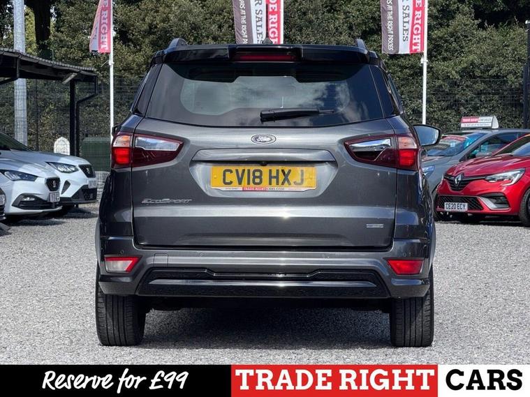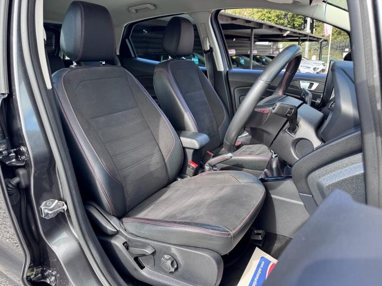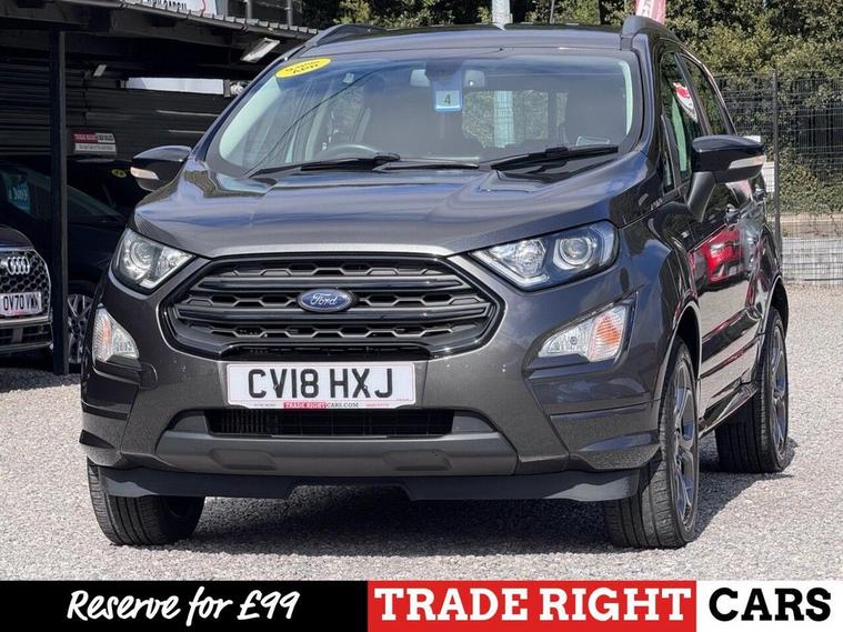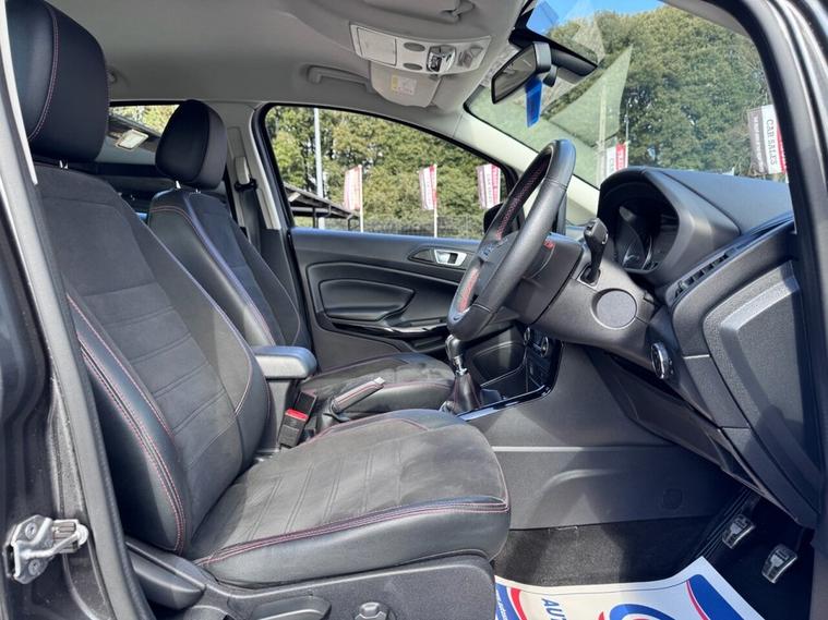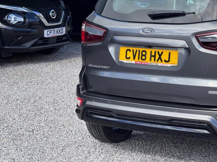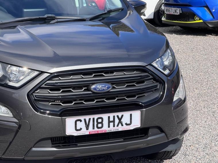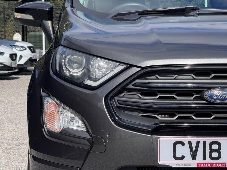 JUST ARRIVED & READY TO DRIVE AWAY! 2018/18 Ford EcoSport 1.0 Turbo ST-Line [Nav] finished in Magnetic Grey with Shadow Black Roof. We are pleased to offer this lovely 5 door petrol SUV. This is the highly desirable and economical 1.0 litre model with a 6 speed manual transmission that offers 138 BHP and over 50 MPG. Insurance group 10/50. It has covered just 34, 365 miles with service history (8 stamps, 7 @ franchise dealers) and drives as you would expect. Just serviced upon arrival. MOT until 30th March 2027 with no advisories. The car is ready to drive away. We will also include a complimentary 12 month AA breakdown cover. Two owners from new, the last owner has had the car since 2021. Euro 6 status - ULEZ compliant. A superb low mileage example with the sought-after ST-Line specification. Highlights include; 17 alloy wheels, ambient lighting, cruise control, electric/heated/folding mirrors, two-tone exterior, navigation with high resolution touchscreen display, fog lights, privacy glass, DAB, USB, bluetooth connectivity with BT audio, rear parking sensors with rear camera, LED DRLs, remote central locking x 2 with keyless start, ST-Line exterior pack, A/C, heated front windscreen and automatic headlights. The full specification list can be found on our website. Advertised below the AutoTrader RRP. Please let us know if you would like any further information or a detailed video sent via WhatsApp.