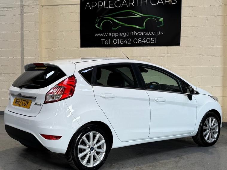 **Ford Fiesta 1.0T EcoBoost Titanium Hatchback 5dr Petrol Manual Euro 6 (s/s) (100 ps)** **Registration:** WU17 CUY | **Year:** 2017 (17) | **Mileage:** 38, 200 miles | **Fuel:** Petrol | **Transmission:** Manual | **Colour:** White | **Owners:** 2 A superb example of the ever-popular Ford Fiesta Titanium, combining outstanding efficiency, modern technology, and a refined driving experience. This well-maintained vehicle has covered just 38, 200 miles and comes with a smooth and responsive 1.0L EcoBoost engine delivering 100 ps, making it ideal for both city driving and longer journeys. **Key Features & Specification:** * 1.0L EcoBoost Petrol Engine (100 ps) award-winning performance and efficiency * 5-Speed Manual Gearbox * Euro 6 Compliant (ULEZ friendly) with Start/Stop technology * Titanium Trim high specification throughout * 16 Alloy Wheels * Chrome Exterior Detailing * LED Daytime Running Lights * Automatic Headlights * Heated Front Windscreen (Quickclear) * Electric Folding & Heated Door Mirrors **Interior & Comfort:** * Premium Cloth Upholstery * Leather-Trimmed Steering Wheel * Automatic Climate Control (Air Conditioning) * Ford SYNC Infotainment System * DAB Radio, Bluetooth Connectivity & USB Input * Voice Control * Trip Computer * Electric Front Windows **Safety & Driver Assistance:** * Rear Parking Sensors * Cruise Control with Speed Limiter * Hill Start Assist * Electronic Stability Control (ESC) * Multiple Airbags * ISOFIX Child Seat Mounting Points * Remote Central Locking **Additional Information:** * 2 Owners from New * Low Mileage for Age * Excellent Fuel Economy * Smooth, Reliable and Economical Engine * Ideal First Car or Practical Daily Driver This Fiesta Titanium offers a perfect balance of comfort, style, and economy. With its high specification and proven reliability, it represents excellent value for money. A well-cared-for example ready to drive away. Part exchange welcome. Finance options available. Contact us today to arrange a viewing or test drive.