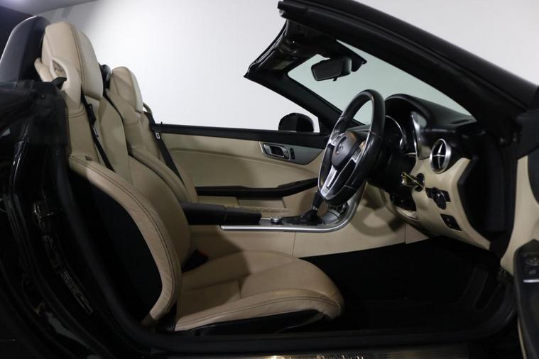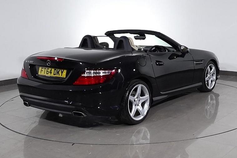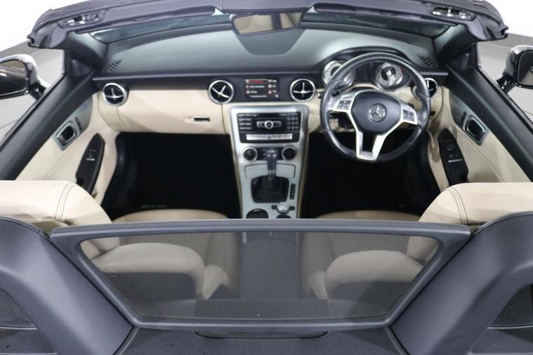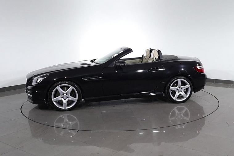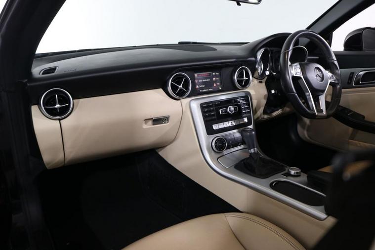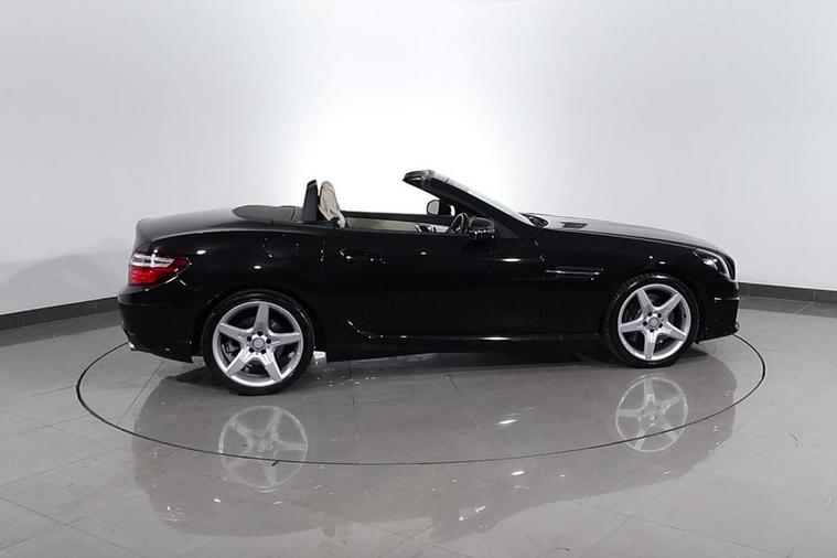This well maintained Mercedes SLK200 AMG Sport Convertible finished in Black looks fantastic complemented by 18 inch Alloy Wheels, LED Running Lights and AMG Body Styling. Find your way with integrated SATELLITE NAVIGATION with LCD Display. Park in ease with FRONT & REAR PARKING SENSORS. Sit in luxury with FULL LEATHER Upholstery with HEATED FRONT SEATS. Keep connected with BLUETOOTH Phone System. Listen to your music through DAB Digital Radio. Comfortable to drive with AIR CONDITIONING and CRUISE CONTROL with Speed Limiting Function. Safe to journey with Attention Assist and Adaptive Braking. Also fitted with Auto Headlights, ISOFIX seats, Multifunctional Paddle Shift Steering Wheel, Alarm, Immobiliser and Remote Door Locking with 2 x keys. Buy in confidence with SERVICE HISTORY with 11 x Documented Services.