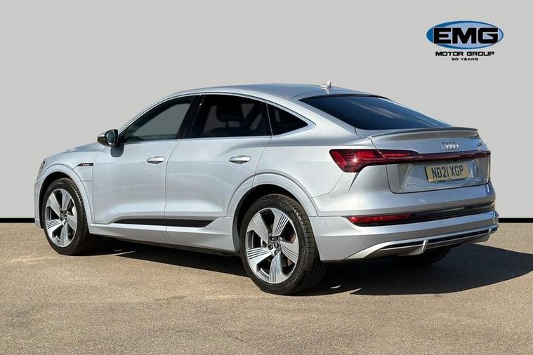 Audi connect safety and service (e-call), Audi drive select, Audi phone box with wireless charging, Audi Smartphone Interface with wireless functionality, Audi virtual cockpit, Bluetooth interface, MMI navigation plus with MMI touch + Twin touch screens with haptic feedback, Parking system plus with 360 degree sensors and function on demand preparation, Power operated tailgate, Progressive steering, Rear view camera, 11KW onboard charger, AC and DC charging access point on drivers side and second AC charging access point on passenger side, Adaptive sport air suspension, Compact e-tron charging system, Household plug type G (GB), Industry plug CEE 32 A/230 V/6 h/long + straight, Mode 3 AC charging cable 22 kW, Quattro all wheel drive, 2 USB-C ports with charging functionality in the rear, Audi sound system with 6 channel amplifier, 180 watt amplifying capacity and 10 loudspeakers including subwoofer, DAB Digital radio, Audi matrix LED headlights and dynamic front and rear indicators with coming and leaving home animations, Body colour bumpers, Body coloured door mirrors, Frameless auto dimming interior rear view mirror, Front and rear illuminated door sill trims with aluminium inlays and S logo in front, LED rear lights, Rear boot lip spoiler, S Line badges on the front grille, S Line front and rear bumpers, S Line rear diffuser, Side and rear window privacy glass, Windscreen with acoustic glazing, 3 rear head restraints, 4-way lumbar support for front seats, Black cloth headlining, Comfort front centre armrest, Electrically adjustable front seats - driver seat with memory, Front head restraints, Front/rear floor mats, Heated front seats, ISOFIX child seat mounting for front passenger seat with airbag deactivation, Isofix child seat mounting points on outer rear seats, Luggage compartment cover, Luggage compartment floor, Manually adjustable steering column, Operating buttons in black + glass look with haptic feedback, Sunvisors with illuminated vanity mirrors, Tool kit, Valcona leather upholstery with front sports seats S embossed logo, Vehicle inlet Combo 2, Gloss styling pack - E-tron, LED interior lighting pack - E-tron, Twin leather pack - E-tron, 3x3 point rear seatbelts, Active vehicle alerting system (AVAS), Audi pre sense front and basic, Seatbelt reminder + electric contact in buckle + advanced safety equipment, Side, front and head airbag system, Tyre pressure warning light, Warning triangle and first aid kit, Anti theft alarm, Anti-theft wheel bolts and wheel loosening detection, Keyless Go