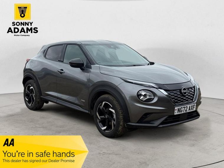 The NISSAN JUKE 1.6 N-Connecta is a stylish and efficient hybrid SUV that combines dynamic performance with advanced technology. Powered by a 1.6-litre petrol engine and hybrid system delivering 143 ps, it offers smooth automatic driving with multiple drive modes including Sport, Normal, and Eco. The E-Pedal STEP and EV Mode switch make city driving effortless and efficient, while hill start assist, active ride control, and active trace control enhance handling and comfort. On the exterior, the JUKE features 17-inch two-tone alloy wheels, LED headlights with high beam assist, LED daytime running lights, LED rear lights with fog functionality, follow-me-home headlights, rear spoiler, body-coloured door handles, rear privacy glass, and electronically adjustable, heated, and auto-folding door mirrors with integrated indicators. Three adjustable rear head restraints and a 60-40 split folding rear seat maximize versatility. Inside, the cabin combines comfort and connectivity with monoform sporty seats, leather steering wheel and gear knob, multifunction steering wheel, automatic climate control, ambient lighting, front armrest, and two rear USB ports. Technology includes the 8-inch NissanConnect touchscreen entertainment system, TomTom traffic-enabled navigation, Apple CarPlay and Android Auto, DAB radio, NissanConnect services, WiFi, and voice recognition for a fully connected drive. Safety is comprehensive with six airbags, side and curtain airbags, ABS with EBD and brake assist, VDC, tyre pressure monitoring system (TPMS), intelligent emergency braking with pedestrian and cyclist recognition, lane departure warning, intelligent lane intervention, traffic sign recognition, and rear view camera with parking sensors front and rear. Other practical features include intelligent key with start push button and walk-away lock, luggage board and lighting, puncture repair kit, and console storage with cup holders. For added peace of mind, if the MOT is under six months, well ensure a fresh MOT is completed before sale. The vehicle also comes with a standard three-month back-to-base warranty, with the option to extend it to a nationwide warranty for added reassurance. Nationwide delivery is also available. Finance Available Special 9.9% APR Offer We offer in-house finance with zero deposit options and flexible monthly payments. Apply in minutes and drive away the same day! For more details or to arrange a viewing, contact 02030183551 or email enquiries dealer's website