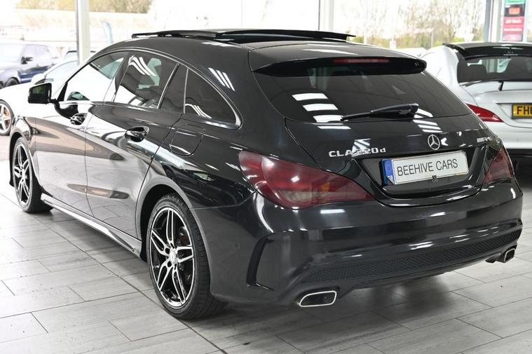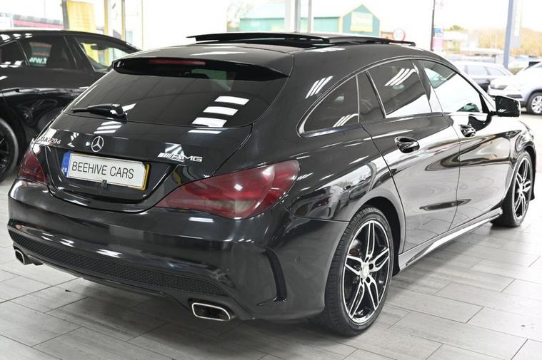 DRIVE AWAY TODAY OR HOME DELIVERY TO YOUR DOORSTEP FINANCE & PART EXCHANGE ARRANGED ONLINE** 7 DAY MONEY BACK GUARANTEE** Lovely car Mercedes Cla220d amg sport shooting brake in metallic black with service history £20 ROAD TAX sat nav cd radio bluetooth media usb panoramic glass roof half leather seats with armrest heated seats electric folding door mirrors front and rear parking aid sensors xenon lights flat bottom steering wheel with f1 style paddleshifts eco comfort sport individual dynamic driving mode electric push button tailgate alloys privacy