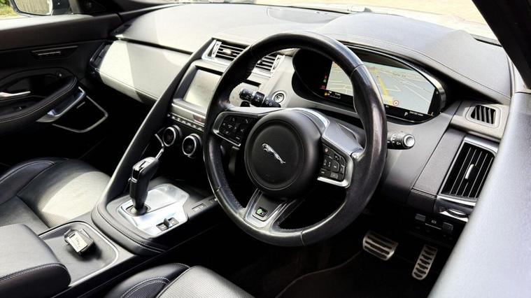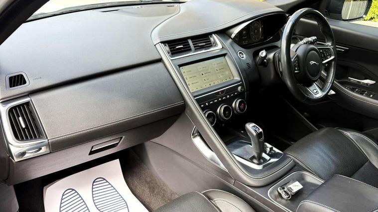 LOW MILES.....CHERRISHED EXAMPLE..... HUGE SPEC.....FULL SERVICE HISTORY.....M-O-T TILL02-2027.....This 2019 Jaguar E PACE D240 R Dynamic HSE boasts an exceptionally low mileage, a testament to its careful ownership and a significant advantage for its age. This stylish compact SUV features a powerful 2.0 litre diesel engine, delivering an impressive 0-60mph time of just 6.5 seconds, all managed through its capable Four Wheel Drive system. As a Euro 6 compliant vehicle, it meets modern emissions standards, and its full service history provides complete peace of mind. The R Dynamic HSE trim enhances its sporty appeal, complemented by striking red brake calipers and a sophisticated Black Contrast Fixed Panoramic Roof, which includes a fixed panoramic sunroof. Further enhancing the driving experience are the advanced Matrix LED headlights with signature Daytime Running Lights, ensuring excellent visibility. Inside, occupants are treated to the premium Meridian Surround Sound System, offering 825W of immersive audio. The E PACE also offers generous boot space, making it practical for everyday use and longer journeys. The inclusion of additional power sockets adds to its convenience, ensuring all your devices can stay charged. These features collectively demonstrate how this Jaguar E PACE offers a superior combination of performance, luxury, and practicality compared to other vehicles in its class.