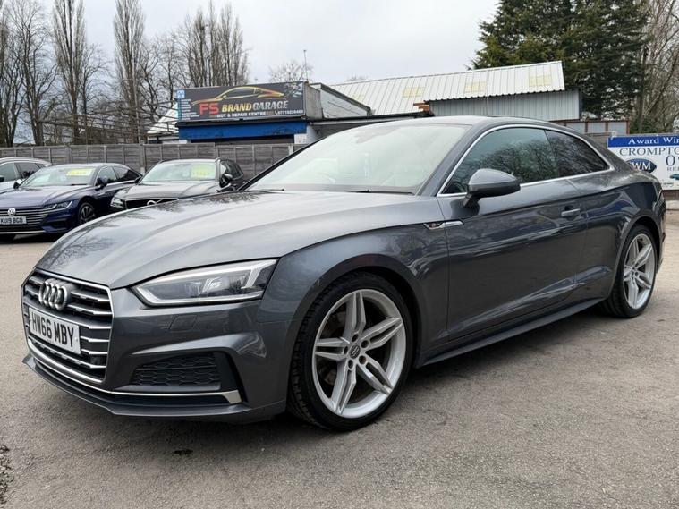 This 2016 Audi A5 TFSI S line boasts a full service history, ensuring its excellent provenance. This stylish coupe features a 2.0 litre petrol engine and is presented in the desirable S line trim. Notable features include 19 inch multi spoke alloy wheels in a contrasting grey with a partly polished finish, a Comfort and Sound Package with keyless entry, and a Light and Vision Pack complete with LED headlights and headlight washers. The extended interior upholstery pack further enhances the cabins premium feel. This Euro 6 compliant A5 offers impressive efficiency, achieving up to 50 miles per gallon, which is a significant advantage over many similar vehicles. Its low CO2 emissions and low insurance group also contribute to lower running costs, making it a sensible choice. Furthermore, the vehicle will be provided with a 12 month MOT for your peace of mind.