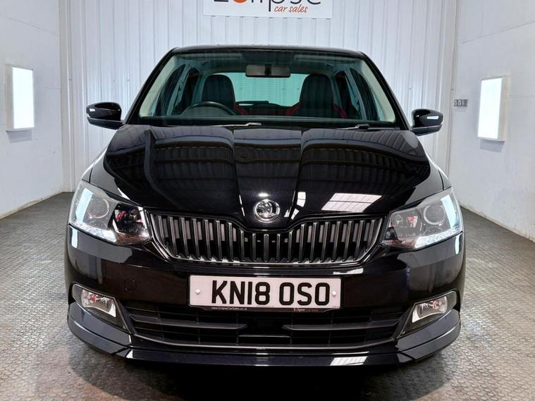 Skoda Fabia 1.0 TSI Monte Carlo 5dr Manual Registered March 2018 (18 Reg) Finished in Black Magic Metallic with Black, Grey and Red Cloth Interior | 16 Inch Multi Spoke Alloy Wheels | Panoramic Glass Roof | Cruise Control | Rear Parking Sensors | Multi Function Steering Wheel | Bluetooth and USB Connectivity | DAB Radio | Air Conditioning | Xenon Headlamps. Serviced at 3, 654 miles | 7, 990 miles | 12, 185 miles | 18, 972 miles | 25, 103 miles | 30, 206 miles | 30, 983 miles | 33, 601 miles.