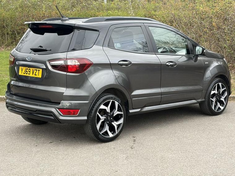 This 2019 Ford EcoSport T ST Line offers excellent peace of mind with its MOT valid until February 2027 and a clear vehicle history check. This stylish ST Line variant is powered by an efficient 1.0L petrol engine and meets Euro 6 emissions standards. Inside, youll find comfort and convenience with Electronic Automatic Temperature Control air conditioning and the Ford SYNC 3 Navigation system, complete with an 8in touchscreen that supports both Android Auto and Apple CarPlay. For easier manoeuvring, it includes a rear view camera and rear parking sensors, while automatic headlights ensure optimal visibility. The Ford EcoSport T ST Line stands out with its impressive fuel economy, achieving up to 46 miles per gallon, which is a significant advantage for your running costs compared to many other vehicles in its class. Furthermore, its low CO2 emissions contribute to a more environmentally friendly drive. This combination of practical features, cost effectiveness, and responsible emissions makes this EcoSport a compelling choice for everyday use.