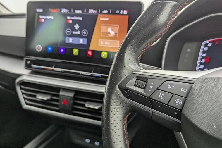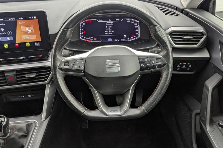 Henson Car Store presents the SEAT LEON 1.5 TSI EVO FR Hatchback 5dr Petrol Manual Euro 6 (s/s) finished in Black. The 2023 SEAT Leon 1.5 TSI EVO FR Hatchback is a stylish and dynamic car that blends sporty design with everyday practicality. Powered by a responsive 1.5-litre TSI EVO petrol engine, it delivers a smooth yet engaging drive, paired with a precise manual gearbox that offers excellent control and efficiency. Meeting Euro 6 emissions standards and featuring stop/start technology, it balances performance with fuel economy, making it ideal for both city driving and longer journeys. The FR trim adds a sportier edge, with sharp exterior styling, distinctive alloy wheels, and a sleek, modern profile that stands out on the road. Inside, the cabin is well-crafted with high-quality materials, supportive sports seats, and a driver-focused layout. Advanced technology comes as standard, including a digital cockpit, touchscreen infotainment system with smartphone connectivity, and a range of driver assistance features designed to enhance safety and convenience. With five doors and a practical hatchback design, the Leon offers ample space for passengers and luggage, making it a versatile choice for families and professionals alike. Combining contemporary design, efficient performance, and a high level of specification, this UK-spec model represents excellent value for anyone seeking a modern and enjoyable driving experience. Stock Number 142
