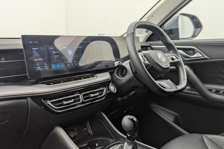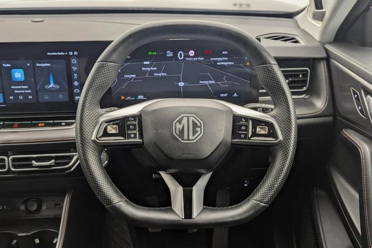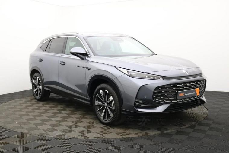 Henson Car Store presents the MG MG HS 1.5 T-GDI Trophy SUV 5dr Petrol Manual Euro 6 (s/s) finished in Grey. The 2025 MG HS 1.5 T-GDI Trophy is a modern and well-equipped mid-size SUV that combines strong performance, advanced technology, and impressive value for money. Powered by a 1.5-litre turbocharged petrol engine producing around 169 bhp, paired with a smooth 6-speed manual gearbox, it delivers a responsive and refined driving experience while maintaining good efficiency for everyday use. With Euro 6 compliance and stop/start (s/s) technology, it meets current emissions standards and helps keep running costs in check. Inside, the Trophy trim offers a premium-feeling cabin with a high level of standard equipment, including a large touchscreen infotainment system with satellite navigation, Apple CarPlay and Android Auto, along with a fully digital driver display. Comfort is a key highlight, with heated front seats, dual-zone climate control, and electrically adjustable seating, making it ideal for both daily commuting and longer journeys. The spacious interior and generous boot capacity also ensure practicality for families or those needing extra versatility. On the outside, the MG HS presents a sleek and confident SUV design, featuring LED lighting, stylish alloy wheels, and silver roof rails that enhance its road presence. It also comes packed with safety and driver assistance features such as adaptive cruise control, lane keep assist, blind spot monitoring, and a rear parking camera, providing added confidence behind the wheel.