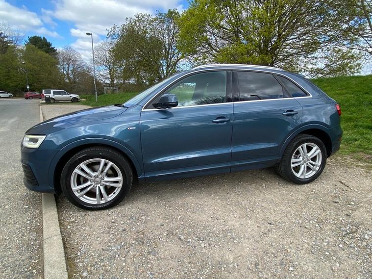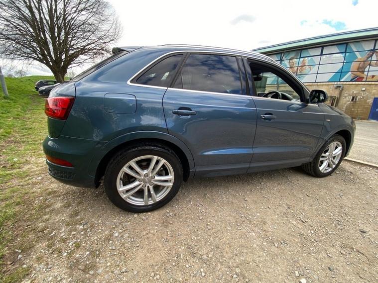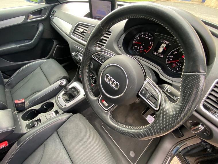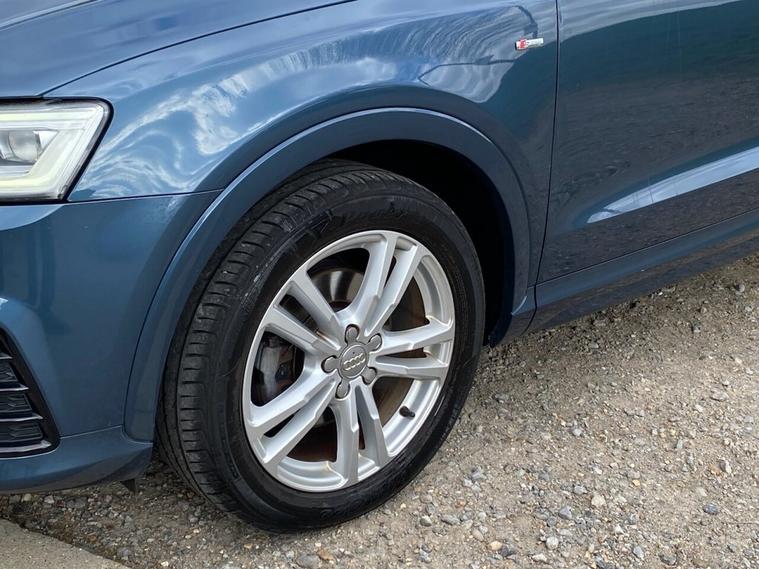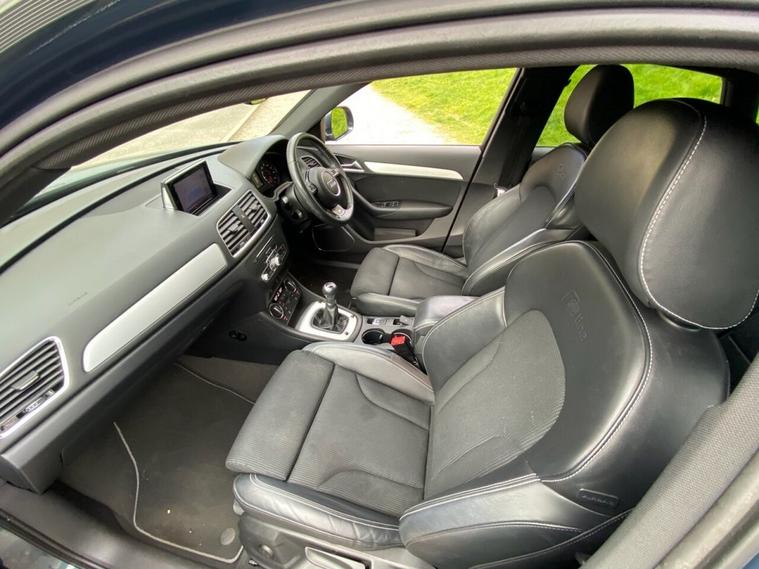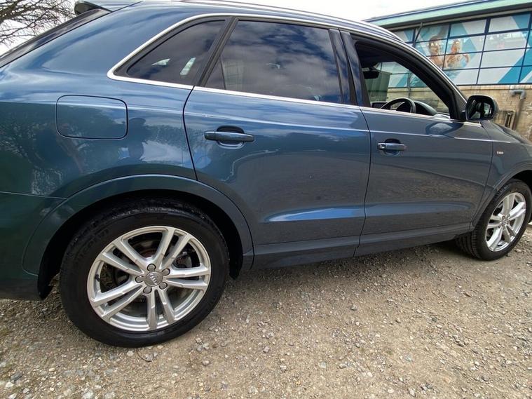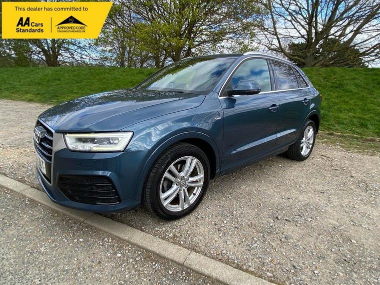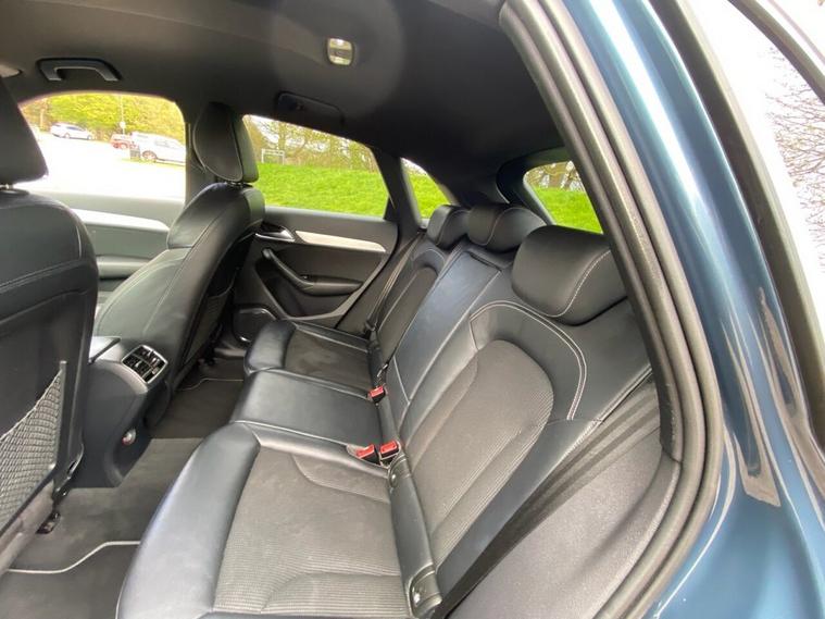 This Audi Q3 TFSI S line from 2015 boasts a full service history, ensuring its excellent provenance. This stylish SUV features a 1.4 litre petrol engine and meets Euro 6 emissions standards. It comes with desirable S line trim, privacy glass for added discretion, and rear parking sensors complete with parking assistance. The convenience of automatic headlights, including all weather LED lighting, and dual zone electronic climate control ensures a comfortable driving experience in all conditions. With only two previous owners, this Q3 offers impressive fuel economy, achieving up to 50 miles per gallon, and benefits from low CO2 emissions. Its acceleration is also noteworthy, reaching 0 to 60 miles per hour in just 8.9 seconds, demonstrating a good balance of performance and efficiency compared to similar vehicles.