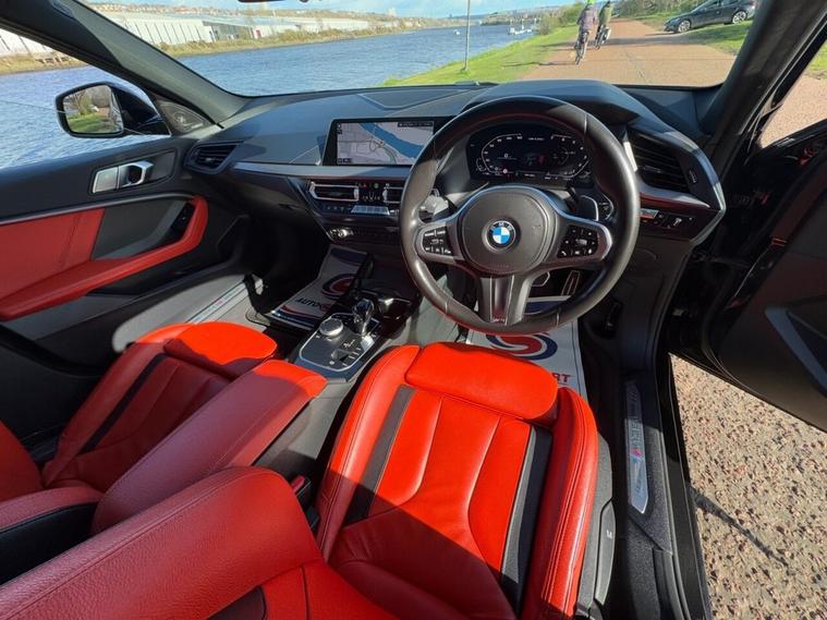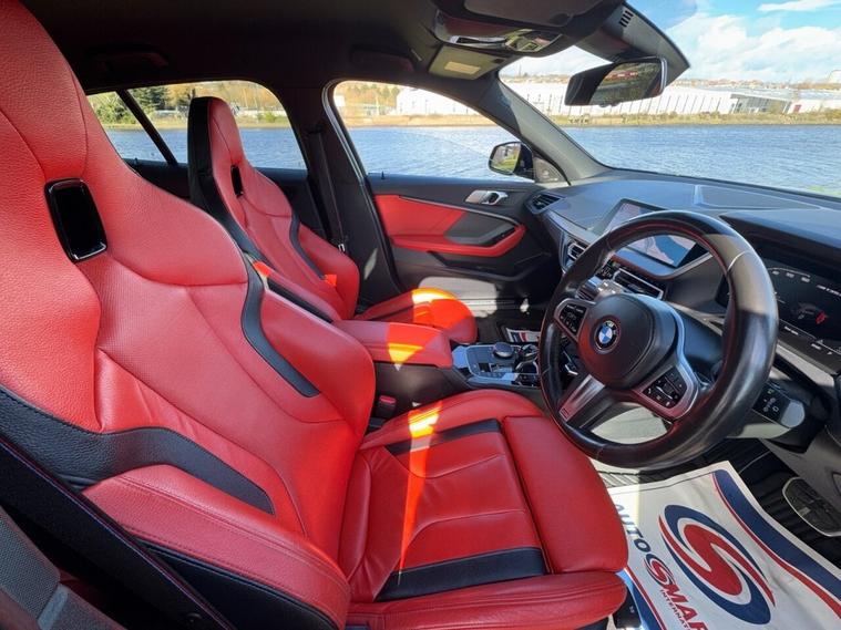 STUNNING BMW M135I IN BLACK SAPPHIRE METALLIC WITH PRIVACY GLASS, 19 ALLOY WHEELS, BLUE CALIPERS, ADAPTIVE LED HEADLIGHTS THIS CAR LOOKS, SOUNDS AND DRIVES AMAZING, LOVELY SPEC INSIDE ALSO WITH RED DAOKTA LEATHER, HEAD UP DISPLAY, HARMON KARDON SOUND SYSTEM, WIRELESS CHARGING, FRONT AND REAR SENSORS, REVERSING CAMERA AND LOTS MORE, WE WILL ALSO PROVIDE YOU WITH A FRESH SERVICE, MOT AND WARRANTY.