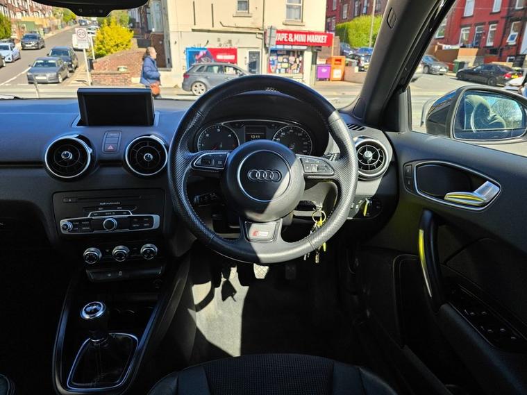 STUNNING CONDITION AUDI A1 1.6 TDI S-Line in Phantom black paint with 17inch S-Line alloys. The car has had 3 owners from new with the last owner for 10 years. It has MOT until Feb 2027 and full service history - 9 documented service stamps to 44, 000 miles. Only £20 year tax and over 60 miles per gallon fuel economy. Spec includes sat nav, rear parking sensors, cruise control, multi-function steering, Bluetooth, electric windows/mirrors, air con, half leather seats and much more. Call 01138032273 or visit dealer's website