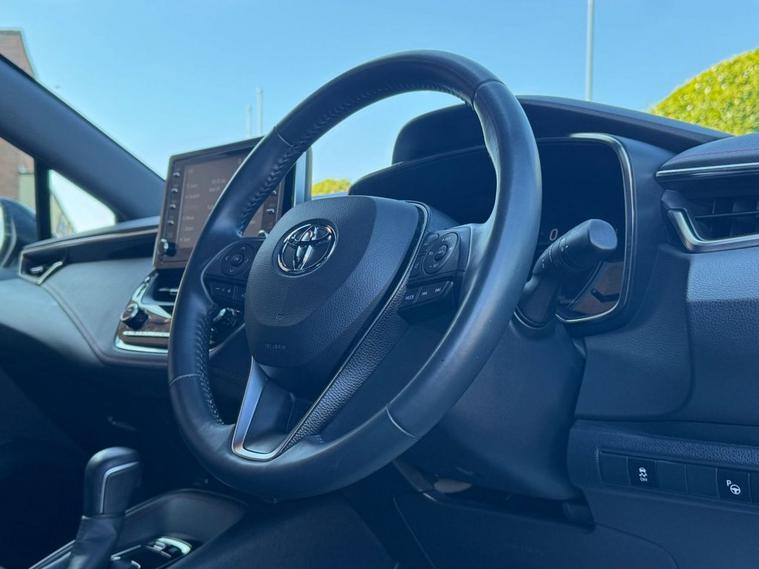 Boasting low mileage for its age, this 2019 (69) Toyota Corolla VVT-h Excel hybrid petrol automatic finished in metallic silver paint, with contrasting freshly refurbished 18 alloys finished in black. With a clear vehicle history check and full service history, including a fresh service and brand new MOT completed April 2026, this Euro 6 compliant model is powered by an efficient 2.0l punchy 184bhp Petrol Hybrid engine and is ULEZ charge free! The Excel trim level ensures a comfortable and convenient driving experience featuring a superb 8 touchscreen infotainment system with navigation built in, heated front seats with velour cloth interior, dual-zone automatic air conditioning, adaptive cruise control, bluetooth, DAB radio, auto lights + wipers, front and rear parking sensors + rear parking camera and park assist (car parks itself), for effortless manoeuvring. This Corolla also benefits from Toyota Safety Sense, enhancing your peace of mind on every journey. This particular petrol automatic Corolla stands out with its impressive fuel economy, achieving an outstanding 53 miles per gallon, which indicates it is more economical than many similar vehicles. Furthermore, its low insurance group and low CO2 emissions highlight its cost effectiveness and environmental consideration and is ULEZ free, making it an attractive choice for a wide range of drivers. As we are an AA accredited dealer you will receive 12 months complimentary AA roadside assistance. AA warranty packages available up to 2 years and superb low rate zero deposit finance deals available today. Why not give us a call or visit our website finance calculator to see how affordable your new car could be. We are rated 5 stars by our customer reviews on Autotrader, Trustpilot, Facebook, Google and Car Gurus so you can be assured you are dealing with a company that truly cares about the customer. We take great pride in providing a personal quality service like no other and guarantee to make your purchase a smooth and pleasant experience. Please read our customer reviews online to see what they have to say about the level of service they received from us when purchasing a car. We have recently been awarded with the accolade of Car Gurus Top Rated Dealer 2023 - thats 6 years running now - and Autotrader Highly Rated Dealer 2019, 2020, 2022 and 2023 - Buy Your Car From The Best In Essex. Viewing strictly by appointment only - please call to avoid disappointment. 14 day money back guarantee on all online purchases subject to T&Cs.