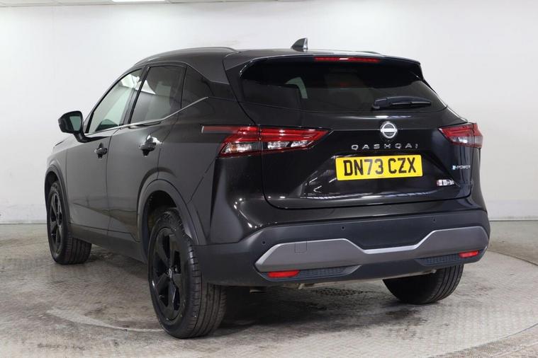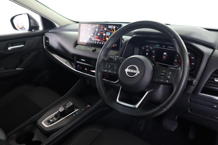 This 2023 Nissan Qashqai h e-POWER Kuro Edition is a superb example, having had only one owner since new. This stylish Kuro Edition model boasts a 1.5 litre petrol hybrid engine, meeting Euro 6 emissions standards. It comes equipped with a range of intelligent features designed for comfort and convenience, including Bluetooth with audio streaming, intelligent auto headlights, and full LED headlights. For effortless journeys, it features intelligent cruise control and a fixed panoramic glass roof, enhancing the spacious interior. Experience impressive performance with this Qashqai, accelerating from 0 to 62 miles per hour in just 7.9 seconds. Its hybrid technology contributes to a remarkable fuel economy of 54 miles per gallon, and it also benefits from low CO2 emissions, making it an environmentally conscious choice. Furthermore, you'll appreciate the generous boot space, perfect for all your luggage and shopping needs, setting this vehicle apart from others in its class.