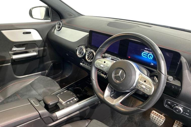 This 2023 Mercedes Benz EQA 250+ AMG Line (Premium) boasts a clear vehicle history and has had only one owner, ensuring excellent provenance. As an electric vehicle, it offers a substantial battery total capacity of 78 kWh, providing a maximum range of 316 miles when new. This model features the desirable AMG Line trim, enhancing its sporty appeal. Notable features include MBUX Augmented Reality for system navigation, 19in AMG 5-twin-spoke alloy wheels in a striking high-gloss black finish, Blind Spot Assist for added safety, and seamless Smartphone Integration with both Android Auto and Apple CarPlay. The Keyless Go Comfort Package, including keyless entry, adds to the convenience. The EQA 250+ AMG Line (Premium) stands out with its impressive electric capabilities. Its full charging time at home using a 7kW charger is approximately 11 hours and 6 minutes, while the fastest public charging time from empty to 80% is a swift 34 minutes. This vehicle is ready for the road, with its MOT valid until March 2027. The 316 mile maximum range at new is a significant advantage, offering extensive driving potential between charges, making it a compelling choice for those seeking an efficient and well equipped electric car.