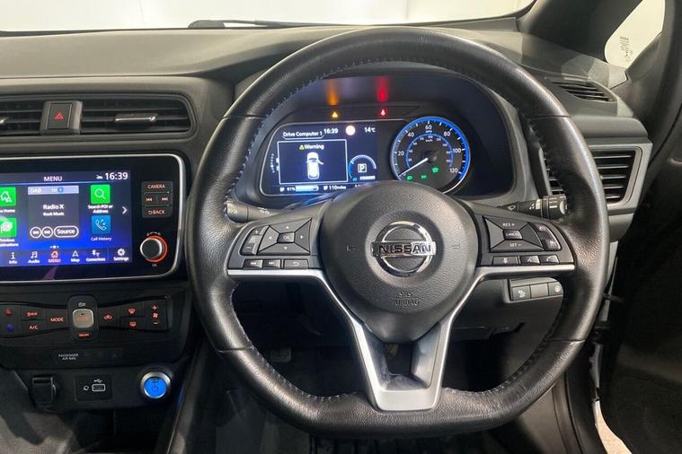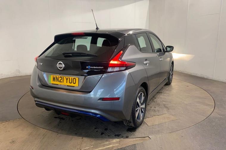 This 2021 Nissan Leaf Acenta boasts exceptionally low mileage for its age, having covered just 14, 158 miles, and comes with a clear vehicle history check. As an electric vehicle, it offers a 40 kWh battery with a maximum range of 168 miles when new. Charging is convenient, with a full charge at home taking approximately 7 hours and 30 minutes using a 7kW charger, and rapid charging to 80% possible in 1 hour and 20 minutes at a public station. This Acenta trim level includes notable features such as Blind Spot Warning with Blind Spot Assistance, a Rear View Camera with Parking Assistance, and Intelligent Auto Headlights. The Nissan Leaf Acenta provides a practical and well equipped driving experience. Its automatic air conditioning ensures a comfortable cabin temperature, while the large boot space offers ample room for luggage or shopping. The inclusion of Blind Spot Intervention further enhances safety by assisting the driver in avoiding potential collisions. These features, combined with its electric powertrain and low mileage, make this 2021 Nissan Leaf Acenta a compelling choice for those seeking an efficient and feature rich vehicle.