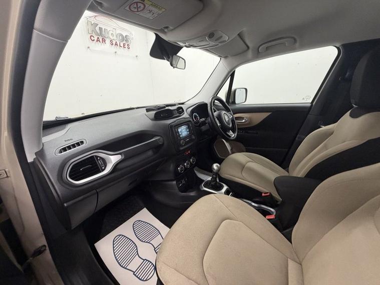 2016 JEEP RENEGADE 1.6 Multijet LONGITUDE 5dr - AWESOME LOOKING CAR. FINISHED IN STUNNING CAPPUCCINO BEIGE. FINANCE AVAILABLE FROM ONLY £115 per mth. 6 MONTHS WARRANTY INCLUDED. EACH VEHICLE COMES WITH A FREE HPI CLEAR REPORT AND 1 YEAR AA BREAKDOWN COVER. 99000 MILES. MOT UNTIL 106/04/2027. SERVICE HISTORY AND JUST SERVICED @ 99000 MILES. **ULEZ COMPLIANT**HUGE SPEC: TOUCH SCREEN SAT NAV, CRUISE CONTROL, REAR PARKING SENSORS WITH DISPLAY ASSIST, TOUCH SCREEN DAB RADIO, AIRCON, BLUETOOTH, REMOTE CENTRAL LOCKING, ELECTRIC WINDOWS/MIRRORS, 17 ALLOY WHEELS. 6 SPEED, USB/AUX, PREVIOUS NON SMOKER. FINANCE PACKAGES - With a number of lenders on board i am able to offer Finance to suit individual circumstances, including Sub Prime. All CARS ARE HPI CHECKED AND CLEAR. WARRANTY - At KUDOS CAR SALES every vehicle comes with a FREE 6 MONTH Warranty. Any repairs under warranty can be carried out at your local garage - Extended warranty available on request at extra cost. 2 KEYS. ***ALL PART EXCHANGES CONSIDERED***
