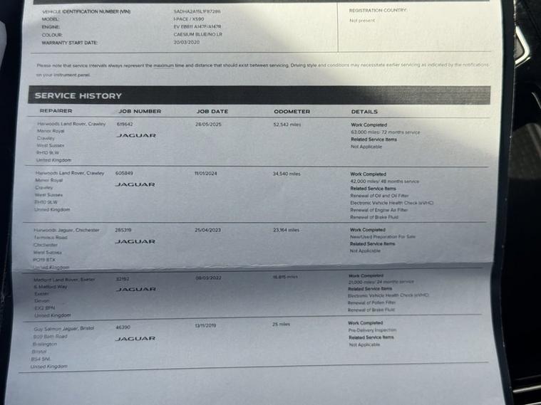 This 2020 Jaguar I-PACE 400 HSE is presented with a clear vehicle history check, offering peace of mind. As an electric vehicle, it boasts Four Wheel Drive capability and a substantial 90 kWh battery, providing a maximum range of 284 miles when new. The HSE trim ensures a premium experience, complemented by notable features such as the Driver Assist Pack, which includes Blind Spot Assistance and Adaptive Cruise Control. Youll also find Keyless Entry, Bluetooth Connectivity for seamless device integration, and striking Matrix LED Headlights with Signature Daytime Running Lights. Inside, the cabin offers exceptional comfort with 18-way electrically adjustable heated and cooled front seats with memory function, alongside heated rear seats for all passengers. The performance of this Jaguar I-PACE is truly impressive, highlighted by its rapid acceleration from 0-60mph in just 4.5 seconds. This indicates a superior driving experience compared to many other electric vehicles. For convenience, a full charge at home using a 7kW charger takes approximately 12 hours and 36 minutes, while rapid public charging can replenish the battery from empty to 80% in as little as 50 minutes, making longer journeys more manageable.
