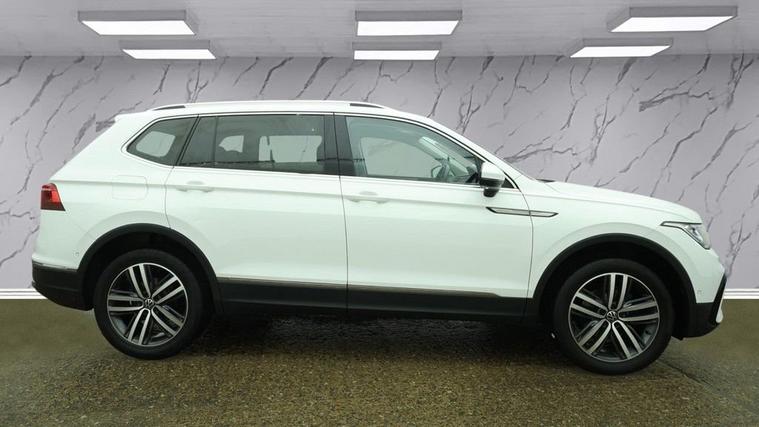 This 2022 Volkswagen Tiguan Allspace TSI Elegance is a superb example, having been owned by just one person since new. This Euro 6 compliant, 1.5 litre petrol model offers a spacious interior with seven seats, making it ideal for families or those who need extra versatility. The Elegance trim level comes equipped with a host of desirable features, including a leather wrapped multi function steering wheel with touch control and shift paddles, which is also heated for your comfort. Experience the open air with the tilting and sliding panoramic sunroof, and enjoy cosy journeys thanks to the heated front seats. The LED headlamps with dynamic cornering lights ensure excellent visibility, while the park distance control in both the front and rear makes manoeuvring effortless. With an acceleration of 0 to 60 miles per hour in just 9.6 seconds, this Tiguan Allspace offers a responsive driving experience that sets it apart from other vehicles in its class.