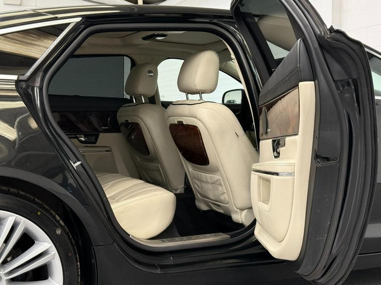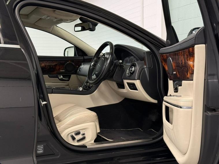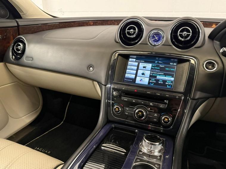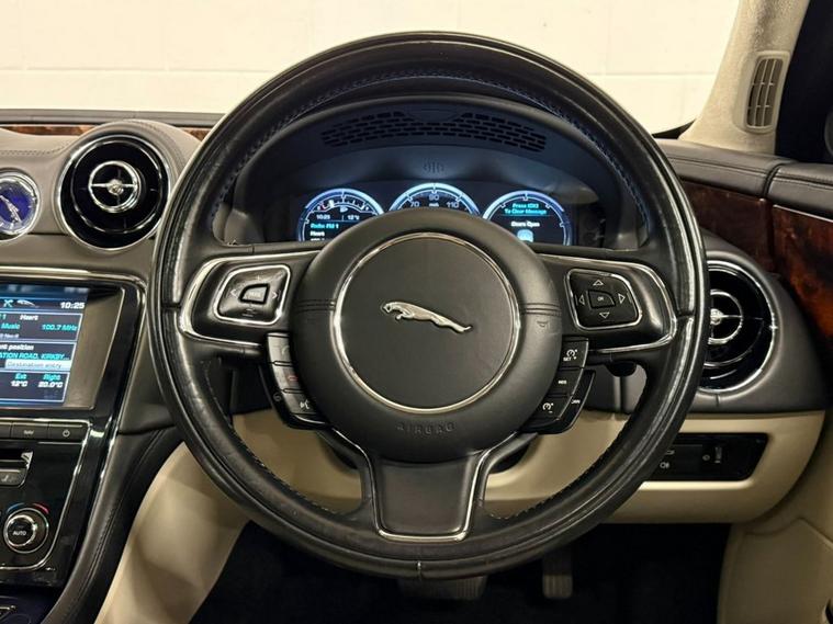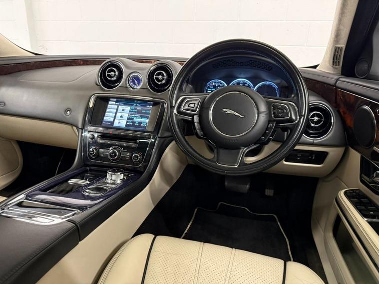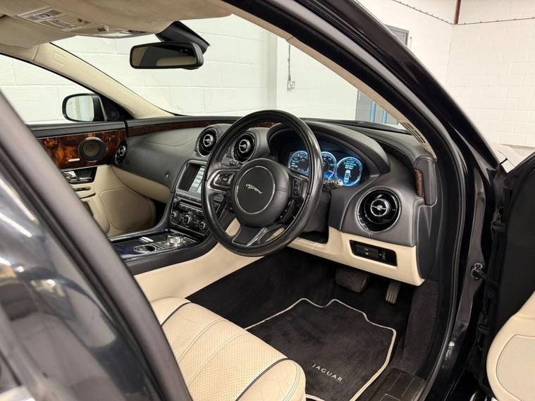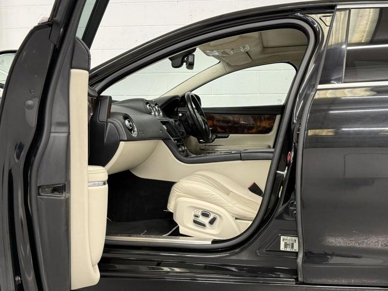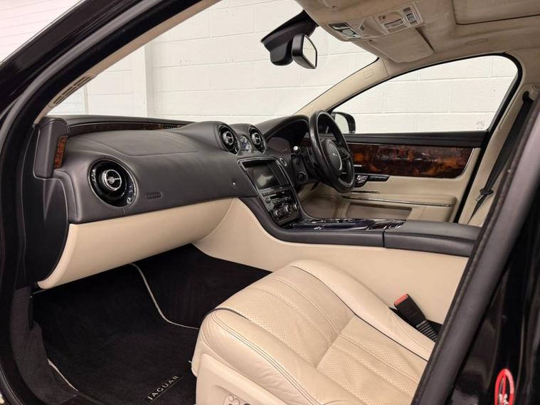 Finished in Ultimate Black with Ivory Soft Grain Leather Interior. Features Include 20 Kasuga Alloy Wheels, Panoramic Glass Roof Tilt Slide Front Section with Electric Blinds, Bowers & Wilkins 1200W Premium Sound System with Dolby Prologic II Surround Sound, Front Media Interface, Multimedia System Front Dual View Functionality with Whitefire Emitter, Satellite Navigation, Bluetooth Connectivity, DAB Digital Radio, FM/AM, Voice Control, Front & Rear Parking Aid with Rear Camera, Heated & Cooling Front & Rear Seats, Driver & Passenger Electric 20 x 20 Way Adjustment with Memory and Massage Seats, 4-Zone Climate Control, Adaptive Bi-Function HID Xenon Front Headlights / Cornering Lights / Intelligent High Beam, Daytime Running Lights, Interior Mood Lighting, Cruise Control, Automatic Speed Limiter, Heated Front Windscreen, Rain Sensing Windscreen Wipers, Electric & Heated Auto Dimming Powerfolding Exterior Mirrors, Keyless Entry, Rear Privacy Glass, 3 Spoke Multifunctional Leather Trimmed Steering Wheel with Gear Shift Paddles, Automatic Transmission Plus Much More Standard Specification. This Jaguar XJ is offered in great condition having covered 108364 miles from new by its 3 previous owners. The car comes complete with a service history consisting of the following 27/03/2013 at 10490 miles, 24/09/2013 at 26006 miles, 28/05/2014 at 42365 miles, 25/09/2015 at 55221 miles, 30/09/2016 at 62018 miles, 15/11/2017 at 68428 miles, 12/11/2018 at 72877 miles, 14/08/2025 at 104649 miles and 16/01/2026 at 108233 miles CAMBELT CHANGED. PLEASE CALL OR E-MAIL FOR FURTHER DETAILS OR TO ARRANGE A PERSONALISED VIDEO OR VIEWING.