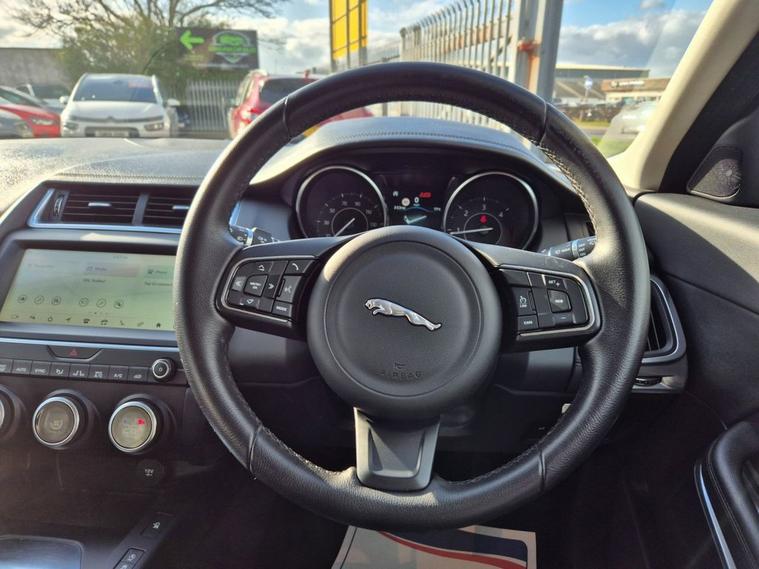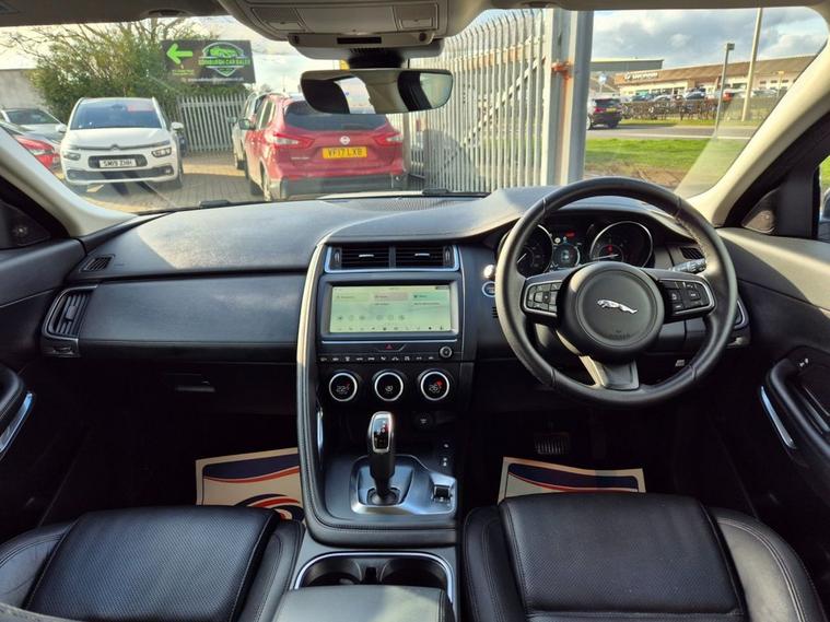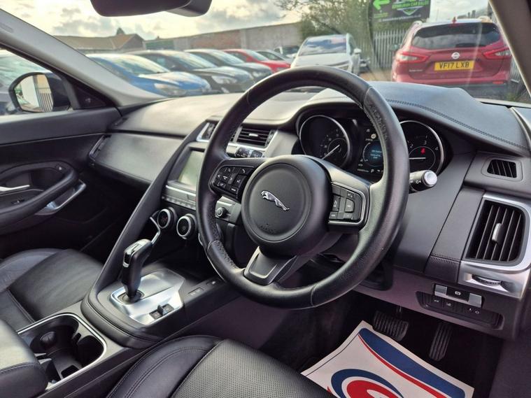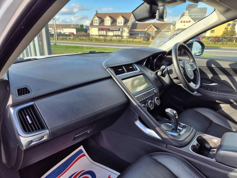 This 2020 Jaguar E-PACE D180 S boasts exceptionally low mileage for its age, having covered just 40, 403 miles. This stylish compact SUV features a responsive 2.0 litre diesel engine paired with a smooth Four Wheel Drive system, ensuring confident handling in all conditions. As a Euro 6 compliant vehicle, it meets modern emissions standards. The S trim level enhances your driving experience with 10-way heated electric front seats, providing comfort in any weather, and front and rear parking aids complemented by a rear view camera to make manoeuvring effortless. Automatic headlights and striking LED headlights with signature daytime running lights ensure you are always visible. The E-PACE D180 S offers a compelling blend of performance and practicality. Its acceleration from 0-60mph in just 8.6 seconds demonstrates its capable performance, outperforming many other vehicles in its class. Furthermore, the generous boot space ensures you have ample room for shopping, luggage, or any adventure you plan. These highlights collectively position this Jaguar E-PACE as a well equipped and desirable choice for those seeking a premium compact SUV.