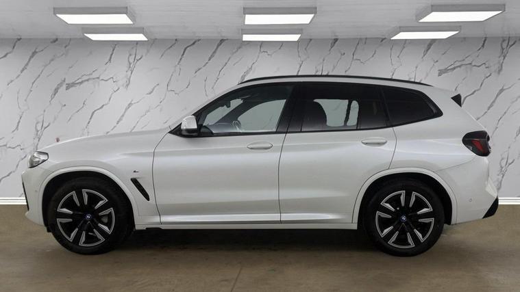 This 2022 BMW iX3 M Sport is a superb example, having had only one owner since new. As an all electric vehicle, it offers a smooth and quiet driving experience, powered by an 80 kWh battery that provides a maximum range of 285 miles when new. This M Sport variant comes equipped with a host of desirable features, including a Reversing Assist Camera with Parking Assistance, automatic climate control, and a stunning Panoramic Glass Sunroof. Youll also benefit from front and rear parking sensors for effortless manoeuvring, and the BMW Live Cockpit Professional with Bluetooth connectivity keeps you informed and entertained. The performance of this electric BMW is truly impressive, with an acceleration of 0-60mph achieved in just 6.8 seconds, demonstrating its dynamic capability. Charging is convenient, with a full charge at home on a 7kW charger taking approximately 11 hours and 20 minutes, while rapid public charging can take the battery from empty to 80% in as little as 32 minutes. Furthermore, the iX3 boasts a large boot space, offering ample practicality for all your needs, making it a compelling choice for those seeking an electric vehicle that excels in both performance and everyday usability.