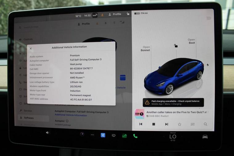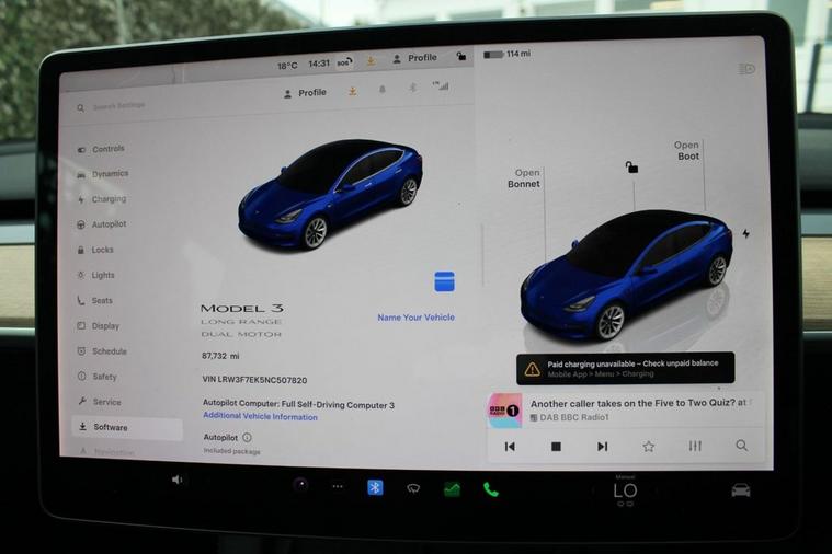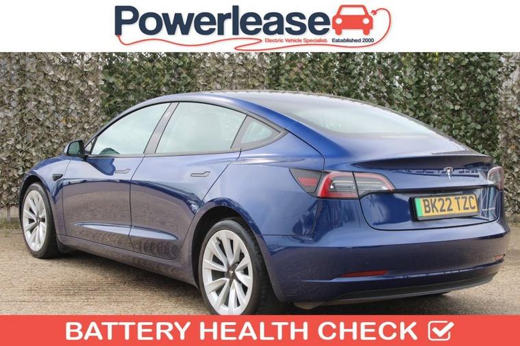 **90.4% BATTERY HEALTH** This 2022 Tesla Model 3 Long Range is a superb example, having had only one owner since new. As an electric vehicle with Four Wheel Drive, it offers an impressive battery total capacity of 78 kWh, providing a maximum range of 389 miles when new. This Model 3 also benefits from 12 way power adjustable front and rear heated seats, a park assist camera system, LED headlights for enhanced visibility, and keyless entry and go for ultimate convenience. Experience exceptional performance with this Tesla Model 3 Long Range, which accelerates from 0 to 60mph in just 4.2 seconds, demonstrating its superior capability compared to other vehicles in its class. Recharging is straightforward, with a full charge at home on a 7kW charger taking approximately 12 hours, and for those on the go, a rapid charge from empty to 80% can be achieved in as little as 26 minutes at a public charging station.