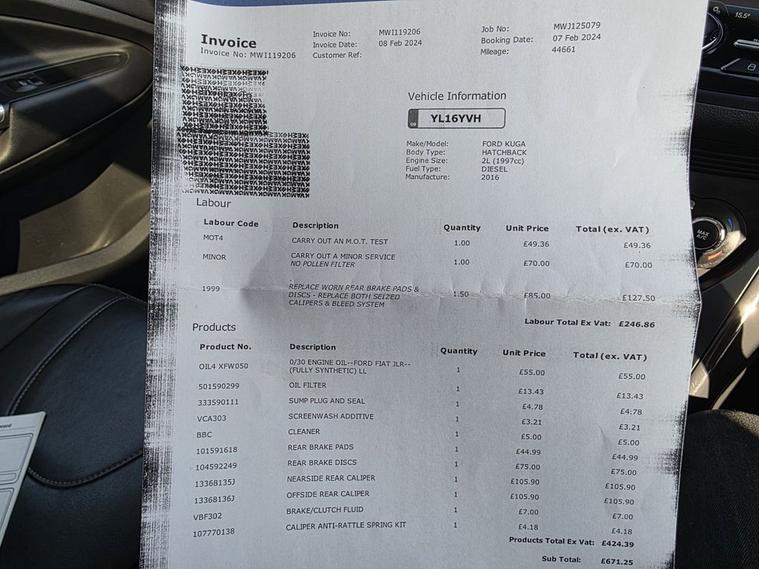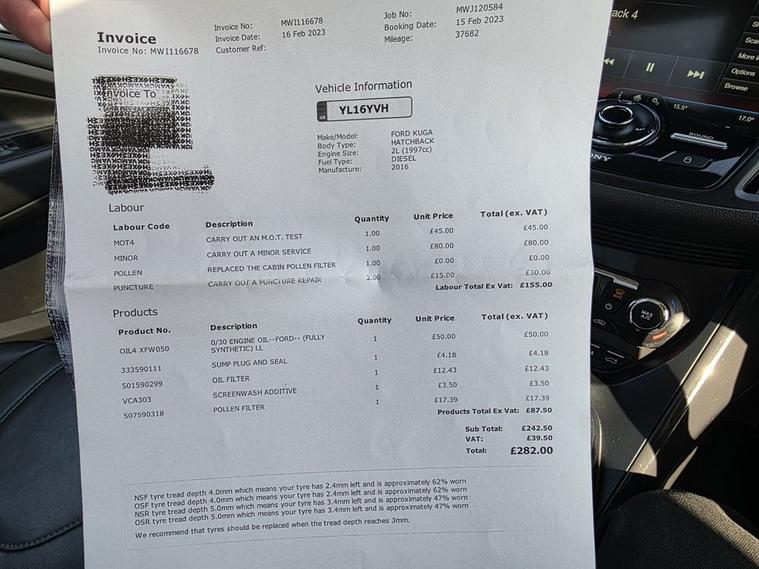 This 2016 Ford Kuga TDCi Titanium X Sport offers exceptional value with its low mileage of just 62, 574 miles, a clear vehicle history check, and an MOT valid until February 2027. This Four Wheel Drive model is powered by an efficient 2.0L Diesel engine, meeting Euro 6 emission standards. The Titanium X Sport trim level ensures a premium experience, featuring a panoramic roof for an airy cabin, dual zone electronic automatic climate control for personalised comfort, and automatic Bi-Xenon headlights for enhanced visibility. Stay connected on the go with the integrated Bluetooth hands free phone system. The Kuga TDCi Titanium X Sport stands out with its impressive fuel economy, achieving up to 52 mpg, which indicates it is more economical than many similar vehicles. Its low CO2 emissions further highlight its efficiency and environmental consideration compared to other cars in its class. This combination of performance, comfort, and cost effectiveness makes this Ford Kuga a compelling choice for those seeking a capable and well equipped SUV.