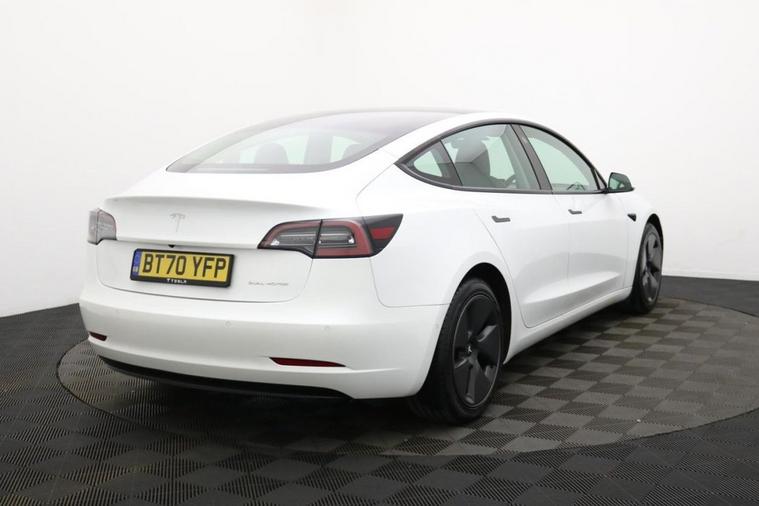 Henson Car Store presents the TESLA Model 3 (Dual Motor) Long Range Saloon 4dr Electric Auto 4WDE in white This 2020 Tesla Model 3 Long Range has had only one owner since new, offering a well maintained example of this popular electric vehicle. As a Long Range variant, it boasts a substantial 78 kWh battery, providing an impressive maximum range of 360 miles when new. This four wheel drive electric car can be fully charged at home using a 7kW charger in approximately 12 hours, and for quicker top ups, it can reach 80% charge from empty in just 26 minutes at a public charging station. The Model 3 also offers generous boot space for your luggage. The performance of this Model 3 is a standout feature, with its ability to accelerate from 0 to 60 miles per hour in a swift 4.2 seconds. This rapid acceleration, combined with its extensive electric range and efficient charging capabilities, positions this Tesla Model 3 Long Range as a compelling choice for those seeking an advanced and capable electric car. Stock Number 369