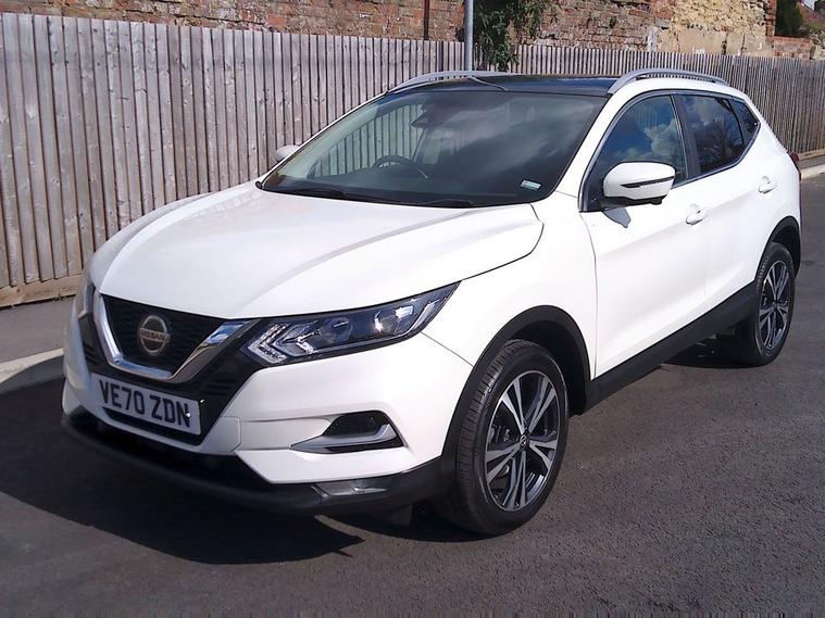 This 2021 Nissan Qashqai DIG T N Connecta is finished in rare Storm White Pearl with contrast black interior and boasts exceptionally low mileage for its age, having covered just 18, 500 miles. This Euro 6 compliant 1.3 litre petrol model, presented in the N Connecta trim, offers a refined driving experience with responsive 140 bhp Engine and has a high specification including 18 Alloy Wheels, Cruise Control, Apple Carplay & Android Auto plus Navigation. It comes equipped with a desirable Glass Roof Pack featuring a fixed panoramic sunroof, providing an open and airy cabin. Convenience is further enhanced by the Nissan Intelligent Key with keyless entry, allowing you to unlock and start the car without removing the key from your pocket. The Qashqai also excels in practicality and technology. Dual zone climate control ensures comfort for all occupants, while front parking sensors and the Intelligent Around View Monitor, which includes a 360 degree camera, make parking and manoeuvring effortless. With an impressive fuel economy of 44 mpg and a low insurance group, this Qashqai represents excellent value and efficiency compared to other vehicles in its class. We are happy to take your part exchange and we guarantee to offer the best price possible for your car. Thinking of car finance? We work with leading specialist motor finance companies to source the best deal for you. Please ask us for a quotation to see just how affordable this car could be. This Qashqai is fresh in and full photos will follow shortly. If you would like to view and test drive this car, please phone us on 01653952409 and we will arrange a convenient time for you. We look forward to hearing from you!