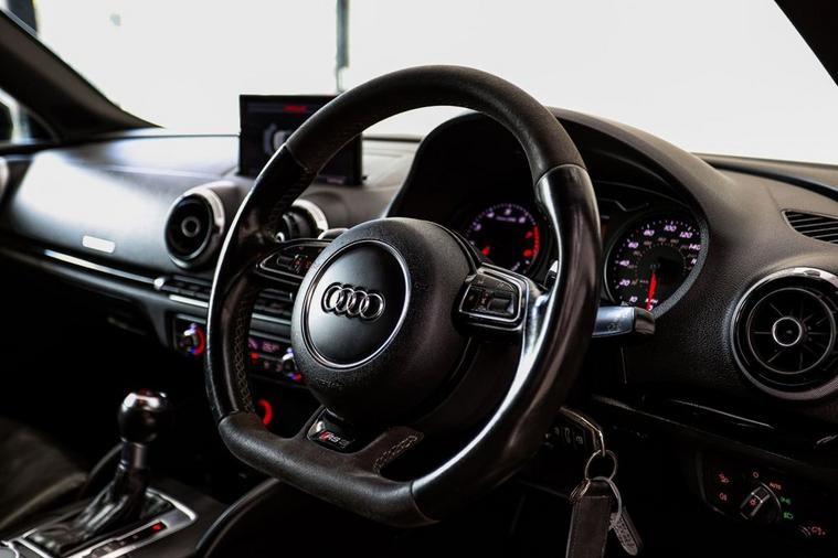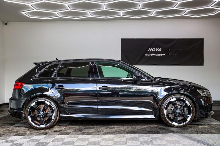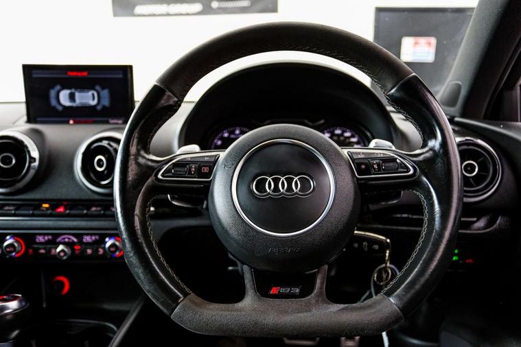 This 2016 Audi RS3 TFSI boasts exceptionally low mileage for its age, having covered just 44, 122 miles, and comes with a clear vehicle history check. This performance saloon features a powerful 2.5 litre petrol engine paired with a four wheel drive drivetrain, ensuring excellent traction and handling. It meets Euro 6 emission standards, and is equipped with All Weather LED Headlights that automatically turn on thanks to a light sensor, along with Audi Parking System Plus for front and rear parking assistance. Inside, youll find Dual-Zone Electronic Climate Control to keep everyone comfortable. The Audi RS3 TFSI stands out with its impressive acceleration, achieving 0-60mph in a remarkable 4.3 seconds. This rapid acceleration demonstrates its superior performance compared to many other vehicles in its class. The combination of its advanced lighting system, comprehensive parking aids, and efficient climate control makes this RS3 a well rounded and desirable option for those seeking a premium driving experience.