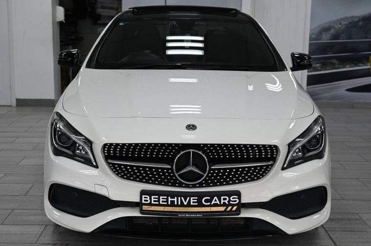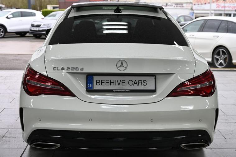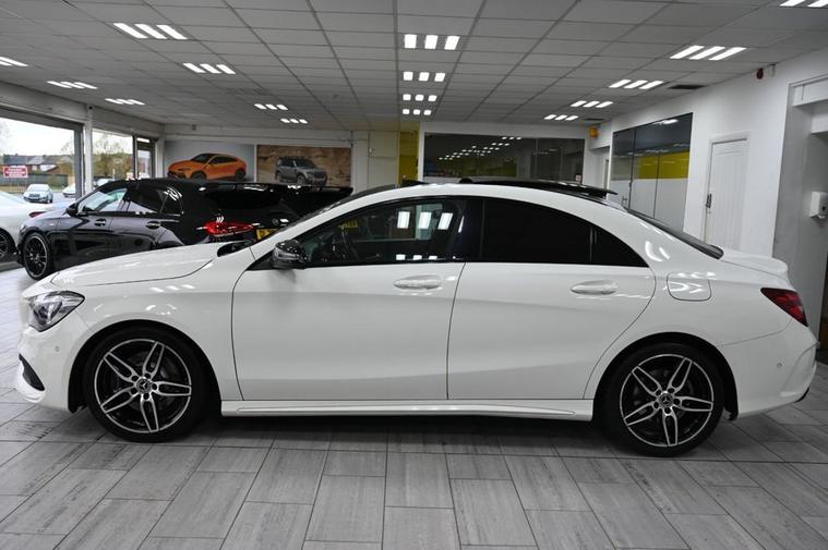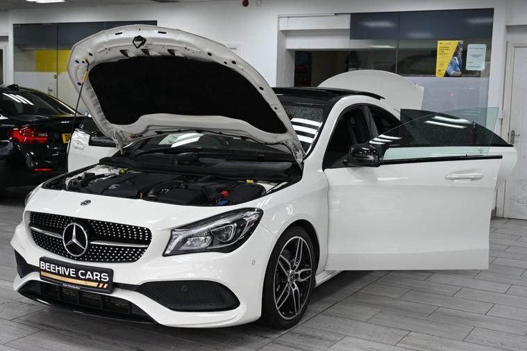 DRIVE AWAY TODAY OR HOME DELIVERY TO YOUR DOORSTEP FINANCE & PART EXCHANGE ARRANGED ONLINE** 7 DAY MONEY BACK GUARANTEE** Lovely car Mercedes Cla220d amg line in metallic white with full service history sat nav cd radio bluetooth media usb panoramic glass roof reverse camera half leather seats with armrest electric door mirrors front and rear parking aid sensors xenon lights flat bottom steering wheel with f1 style paddleshifts eco comfort sport individual dynamic driving mode push button start stop alloys privacy