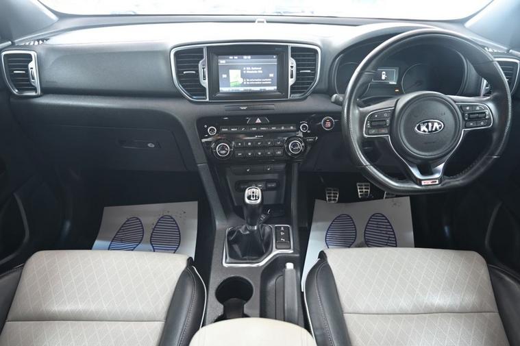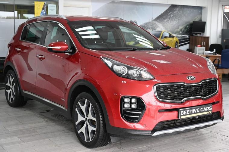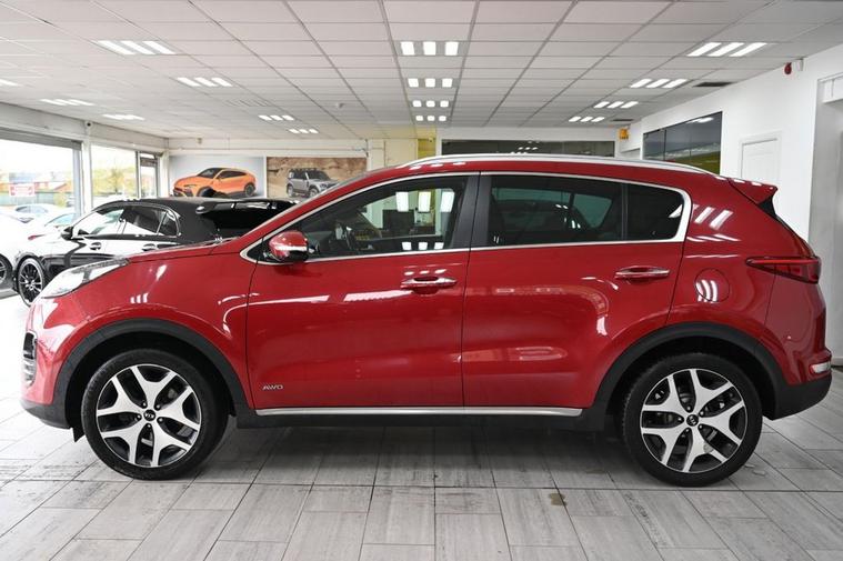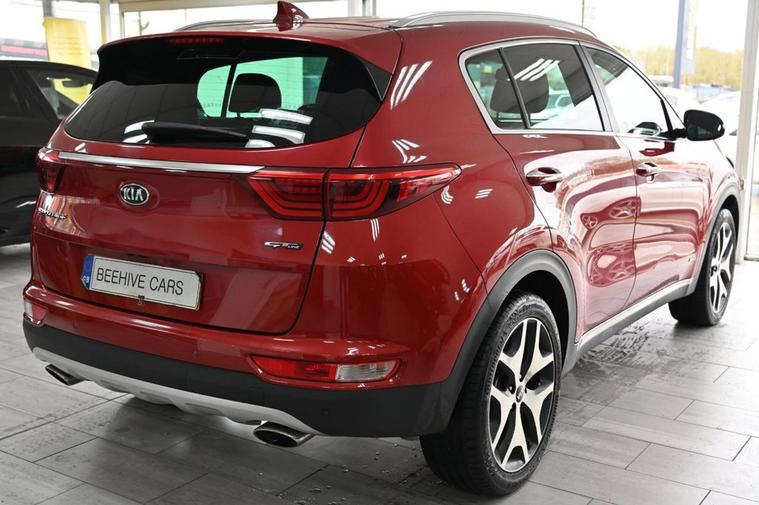 DRIVE AWAY TODAY OR HOME DELIVERY TO YOUR DOORSTEP FINANCE & PART EXCHANGE ARRANGED ONLINE** 7 DAY MONEY BACK GUARANTEE* Nice spec Kia Sportage 1.6 t-gdi gt-line suv awd in metallic red with full service history sat nav dab radio bluetooth media usb aux reverse camera two tone leather seats with armrest heated seats electric folding door mirrors front and rear parking aid sensors xenon lights flat bottom gt-line steering wheel push button start stop alloys privacy