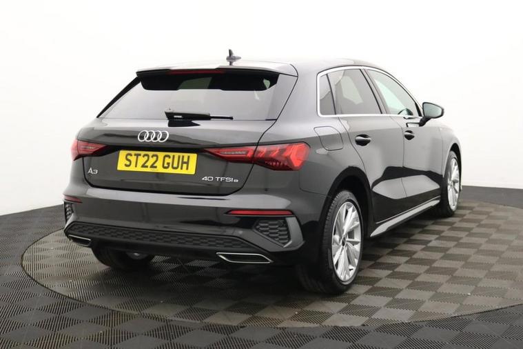 Henson Car Store presents the AUDI A3 1.4 TFSIe 40 S line Sportback 5dr Petrol Plug-in Hybrid S Tronic Euro 6 presented in Black This 2022 Audi A3 1.4 TFSIe 40 S line Sportback offers an impressive blend of efficiency, performance, and modern styling, making it an ideal choice for drivers looking to step into plug-in hybrid technology without compromising on quality or driving enjoyment. Combining a responsive 1.4 TFSI petrol engine with an electric motor, it delivers smooth acceleration and the flexibility of low-emission driving, while the S Tronic automatic gearbox ensures seamless gear changes. The S line trim enhances its sporty appeal with sharp exterior styling, distinctive alloy wheels, and a refined, driver-focused interior. Inside, the cabin is packed with advanced technology and premium features, including a fully digital cockpit, touchscreen infotainment system with satellite navigation, and smartphone integration for effortless connectivity. Comfort is prioritised with supportive sports seats, high-quality materials, and dual-zone climate control, while practical five-door Sportback versatility makes it perfect for everyday use. With its combination of efficiency, cutting-edge tech, and stylish design, this Audi A3 plug-in hybrid is a smart and sophisticated choice. Stock Number 096