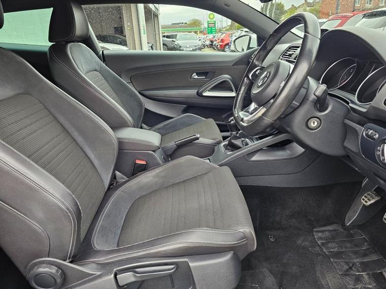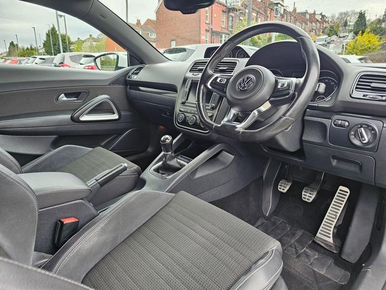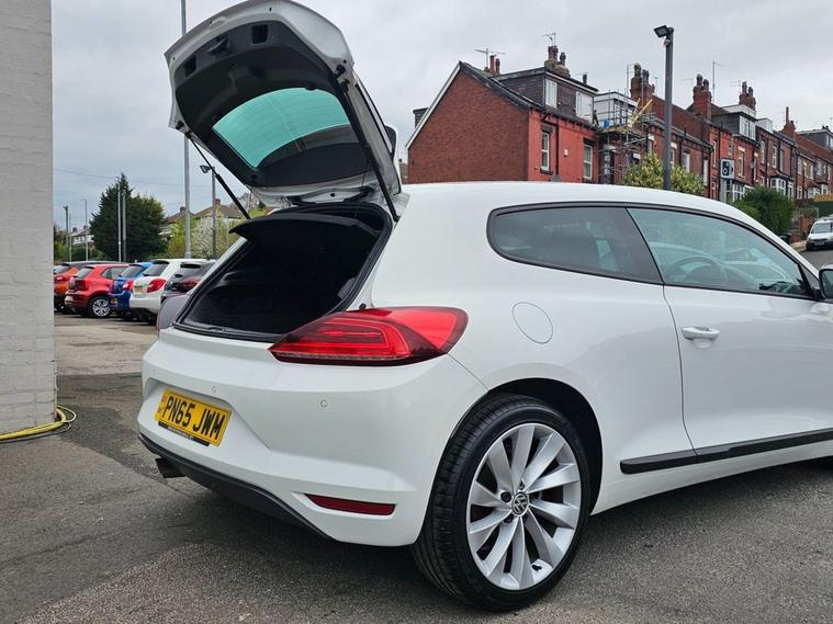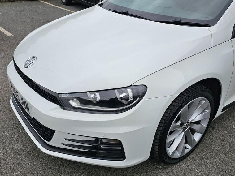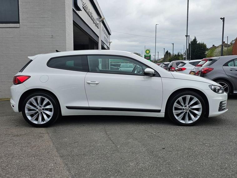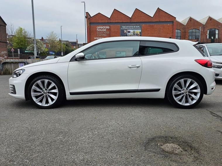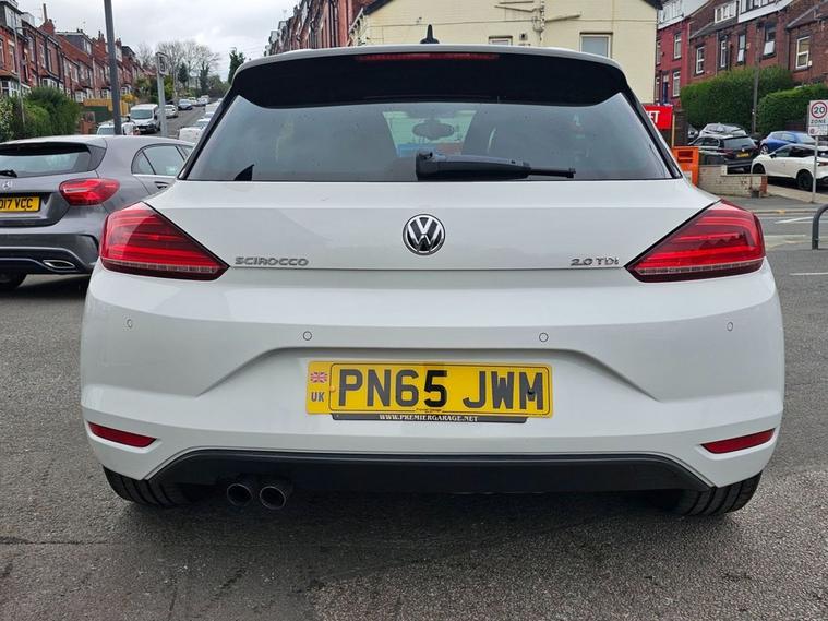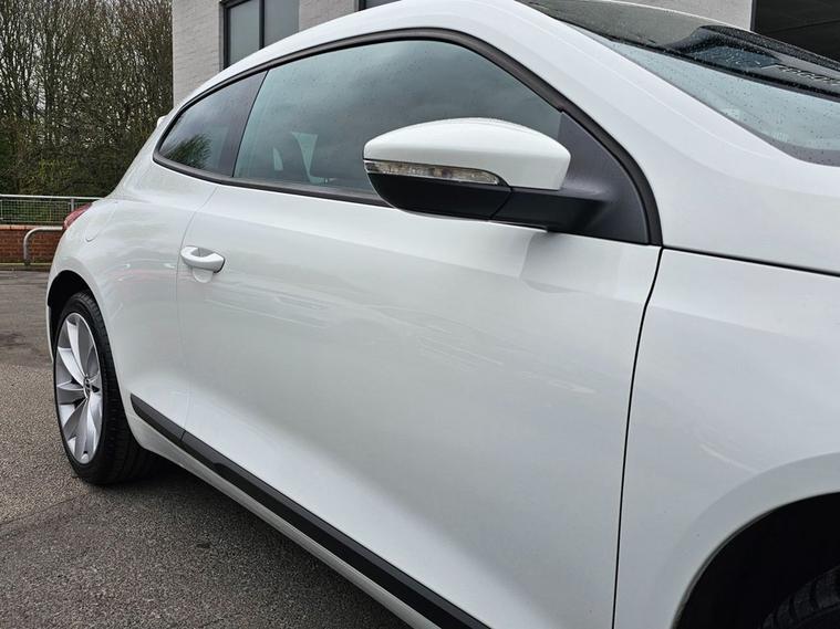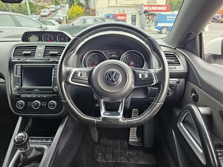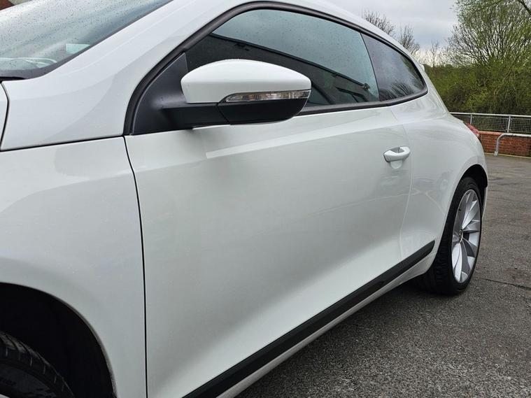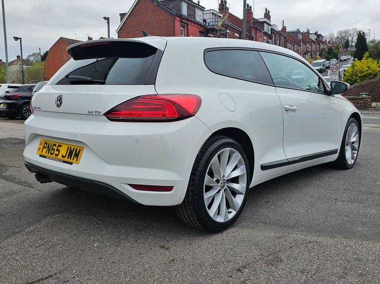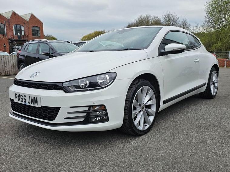 Stunning VW Scirocco 2.0 TDI Tech GT in White paintwork with 18 Interlagos alloy wheels. Only 2 former keepers from new with full service history. The car will come mechanically inspected with a fresh 12 months MOT. Spec includes Sat nav, Front/Rear parking sensors, Apple Carplay, Bluetooth, DAB Radio, Multi-function steering, Auto Headlights, Half leather interior, Remote central locking, electric windows/mirrors, Climate control with A/C and much more. Call 01138032273 or visit dealer's website