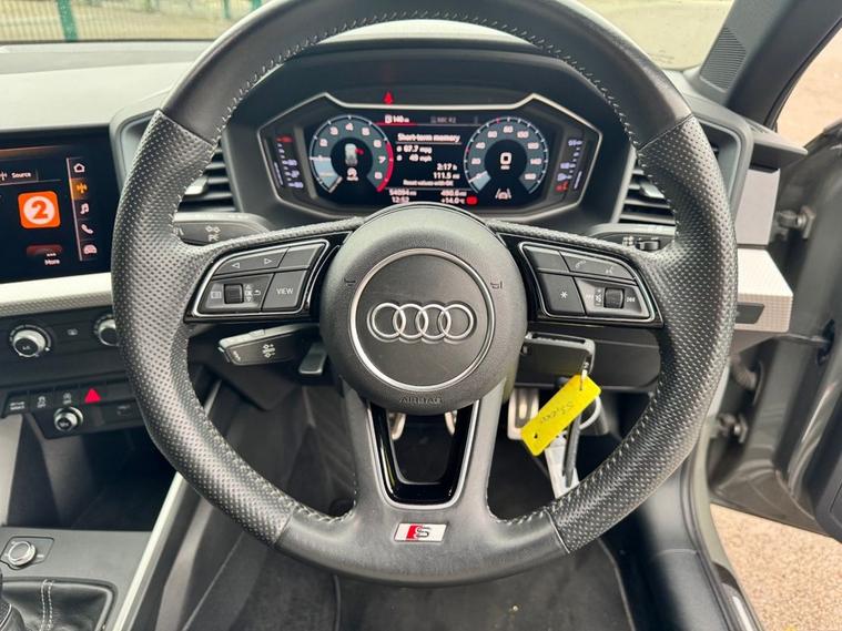 Audi A1 1.0 TFSI S Line (2019) 1 Owner, Full History, High Spec, Premium Hatch A stunning example of the premium and sporty Audi A1 S Line, combining sharp styling, advanced technology, and a refined driving experience. This 2019 (new shape) model is powered by the efficient 1.0 TFSI petrol engine, offering smooth performance with excellent fuel economy. Mileage: 54, 000 miles Owners: 1 Owner from new Service History: Full Service History Insurance Group: Low ideal for affordable premium motoring Condition: Excellent throughout well maintained and drives superbly Key Features & Specification: Apple CarPlay & Android Auto (Audi Smartphone Interface) Built-in Satellite Navigation system Cruise control with speed limiter Rear parking sensors Half leather / cloth S Line sports seats Bluetooth hands-free & media streaming DAB digital radio Multifunction flat-bottom steering wheel Digital cockpit display (10.25 screen) Air conditioning / climate control Electric windows & mirrors Remote central locking USB connectivity S Line Specification (Factory Upgrades): S Line exterior styling pack (sport bumpers, side skirts, badging) () 17 alloy wheels (upgraded over Sport models) () Sports suspension for improved handling () Sports seats with enhanced support () Flat-bottom sport steering wheel Black headlining & aluminium interior trim () About the Car: The 2019 model is the new-shape Audi A1, offering a much more modern interior and upgraded tech compared to earlier versions. It comes with a fully digital cockpit and advanced infotainment system as standard, including smartphone integration and touchscreen display () The A1 is known for its premium build quality, comfortable ride, and strong resale value, making it one of the most desirable small hatchbacks on the market. Performance & Economy: 1.0 TFSI petrol engine (approx. 95116 bhp) Smooth manual gearbox Excellent fuel economy (50+ MPG combined) Low running costs for a premium brand