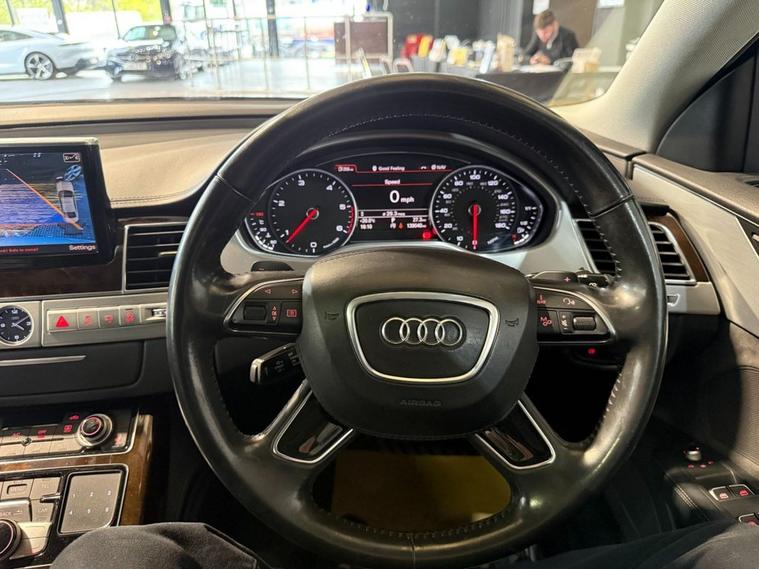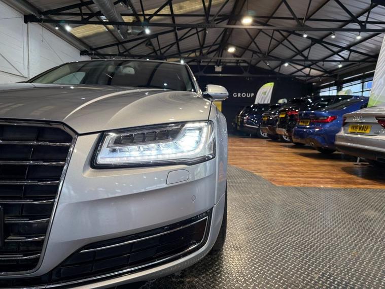 This 2016 Audi A8 TDI V6 SE Executive boasts a clear vehicle history, offering peace of mind for its next owner. This sophisticated saloon features a powerful 3.0 litre diesel engine paired with Audis renowned four wheel drive system, ensuring confident performance in all conditions. As a Euro 6 compliant vehicle, it meets stringent emission standards. The SE Executive trim level comes equipped with impressive technology, including Audi Parking System Plus with Park Assist, which utilises front and rear sensors to aid manoeuvring with rear view camera. Further enhancing the driving experience are the striking Audi Matrix LED Headlights with Dynamic Front and Rear Indicators, and the convenience of the Audi Phone Box for wireless phone charging. The Premium Comfort Package adds further luxury, featuring memory seats for personalised driving positions and a premium branded sound system, specifically the BOSE Surround Sound System, for an immersive audio experience. This Audi A8 also offers generous large boot space, making it practical for everyday use and longer journeys. Its impressive acceleration, reaching 0-60mph in just 5.9 seconds, demonstrates a dynamic performance that sets it apart from many similar vehicles in its class.