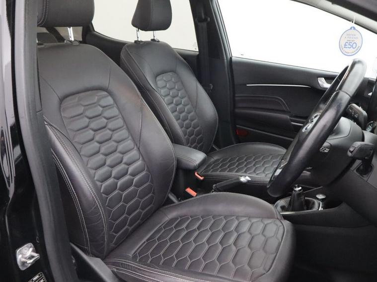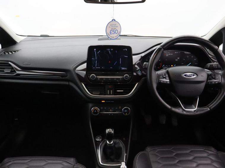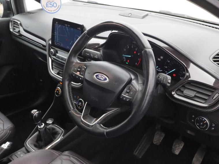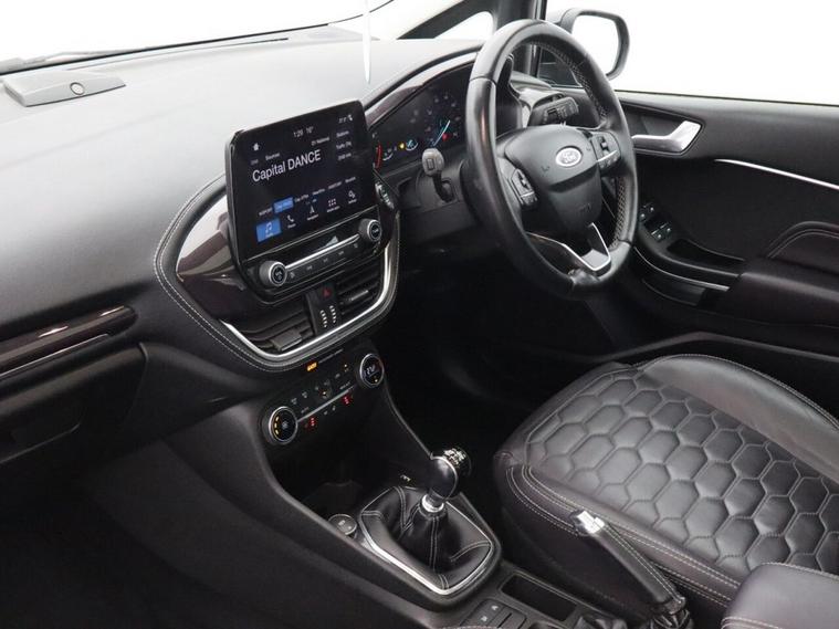 With 46, 353 miles, this Ford Fiesta 1.0T EcoBoost Vignale Hatchback is a premium take on one of the UKs most popular compact hatchbacks, offering a perfect balance of efficiency, comfort and advanced technology. Finished in black, this Ford Fiesta Vignale is powered by the award-winning 1.0 EcoBoost petrol engine producing 125 PS, paired with a manual transmission for a smooth, responsive and economical driving experience. As a Euro 6 compliant petrol hatchback, it delivers low running costs while maintaining excellent everyday usability. Inside, this Ford Fiesta Vignale stands out with its high-quality interior and impressive specification. The Comfort Pack enhances everyday driving with added convenience features, while heated front seats and a heated steering wheel provide excellent comfort during colder months. The rear view camera and rear parking distance sensors make parking and manoeuvring simple and stress-free, especially in tighter spaces. Cruise control also adds extra comfort on longer journeys, helping maintain a steady speed with ease. The Ford Fiesta Vignale 1.0 EcoBoost is widely recognised for its refined interior, excellent driving dynamics and strong fuel efficiency, making it one of the most desirable used Ford Fiesta models available. Combining premium features, stylish design and everyday practicality, this used Ford Fiesta petrol manual hatchback represents a fantastic opportunity for anyone looking for a well-equipped, economical and comfortable small car with modern technology.