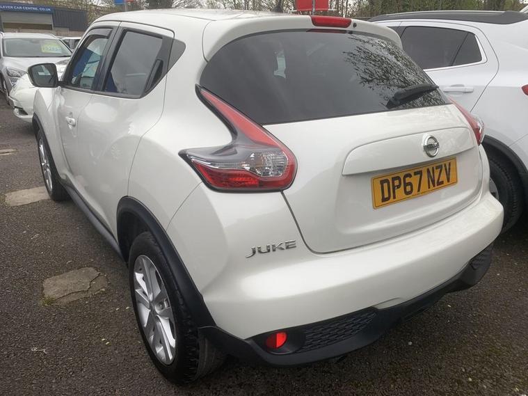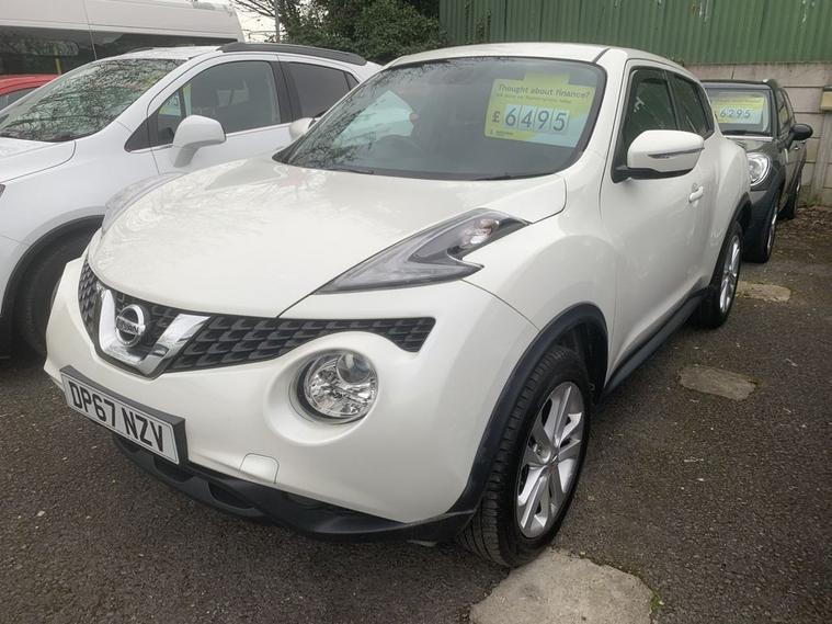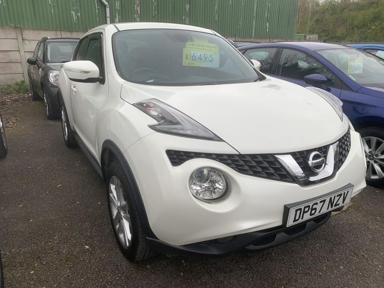 Nissan Juke DIG-T N Connecta in white, has service history with 6 stamps. Comes with sat navigation, 17 alloy wheels, air conditioning, electric windows in the front and rear, electric folding mirrors, keyless start and entry. 360 camera, half leather trim, cruise control, auto lights and wipers, rear privacy glass, its a 6 speed, has bluetooth, a touchscreen dab radio, aux port, usb, multifunction steering wheel and 2 remote keys. THE CAR WILL HAVE A SERVICE AND 12 MONTHS MOT, WITH ALL ADVISORIES ADDRESSED / PART EXCHANGE IS ALWAYS WELCOME / FREE 12 MONTH AA ROADSIDE RECOVERY INCLUDED / FINANCE IS AVAILABLE VIA OUR WEBSITE LINK / THE CAR HAS BEEN HPI AND MILEAGE CHECKED, ALL OK / WE ARE A FAMILY RUN BUSINESS AND HAVE BEEN TRADING FOR 35 YEARS, WE OFFER DELIVERY IN MAINLAND UK (Please ask for details), WE ARE HERE TO HELP YOU! PLEASE CONTACT US WITH ANY QUESTIONS