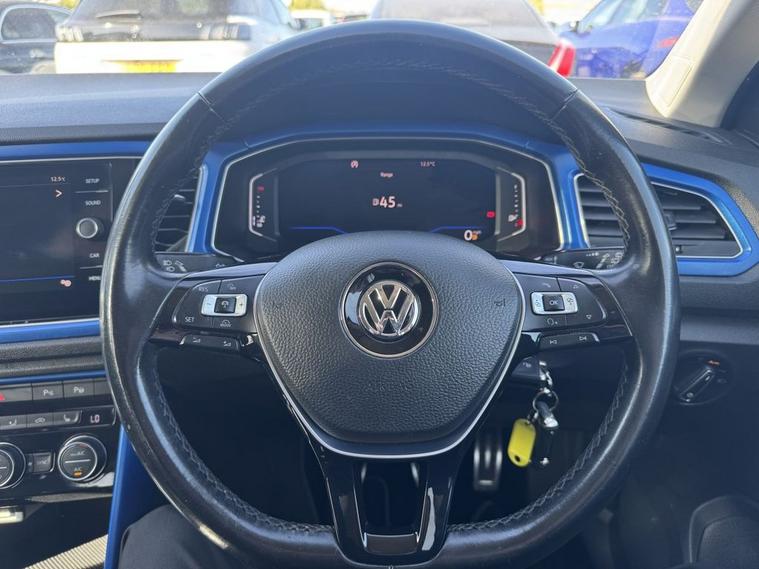 This 2018 Volkswagen T-Roc TSI EVO Design boasts a clear vehicle history, offering you peace of mind. This stylish compact SUV features a 1.5 litre petrol engine, meeting Euro 6 emissions standards. Inside, youll find the Composition Media System with Bluetooth connectivity, and Car-Net App-Connect which seamlessly integrates your Android Auto or Apple CarPlay. For added convenience and safety, it includes Adaptive Cruise Control and front and rear parking sensors, all managed through a 2Zone electronic climate control system. Experience impressive efficiency with a highlight fuel economy of 53 miles per gallon, alongside low CO2 emissions and a low insurance group, indicating that running costs are kept to a minimum. This T-Roc also offers brisk performance, accelerating from 0 to 60 miles per hour in just 8.4 seconds, demonstrating its capability compared to other vehicles in its class.