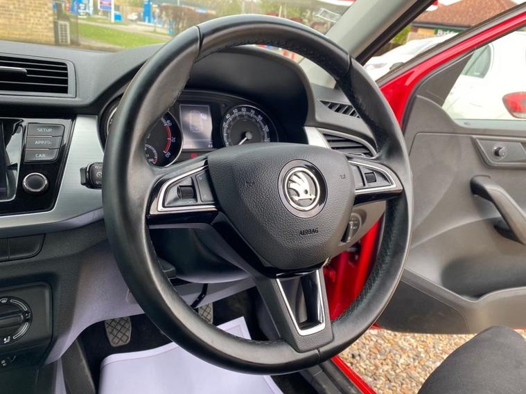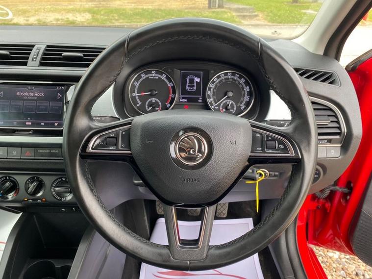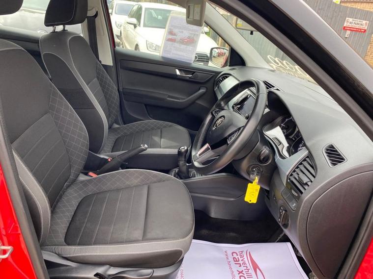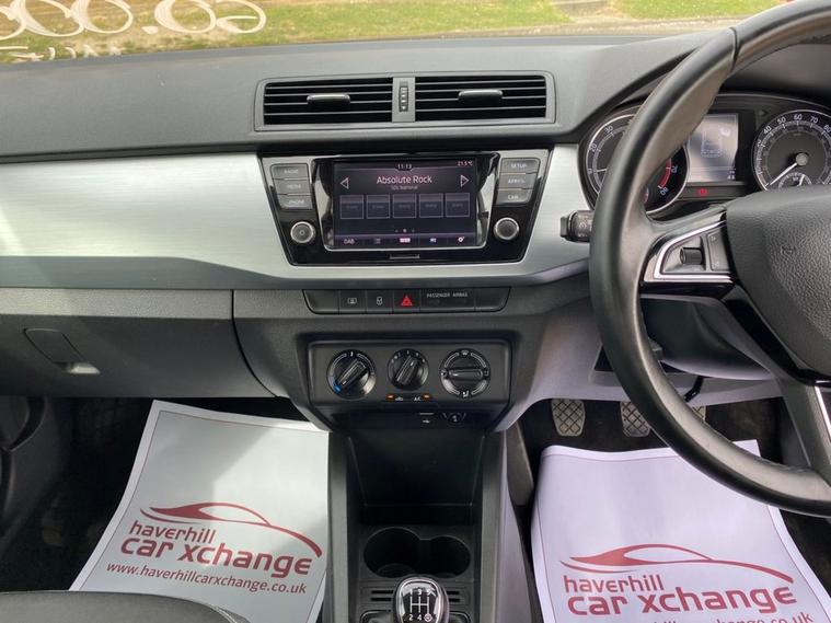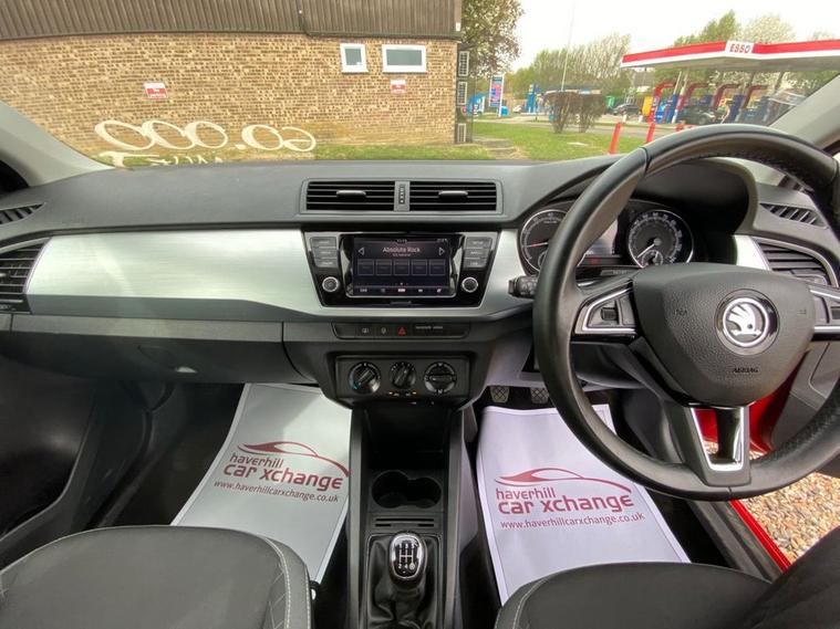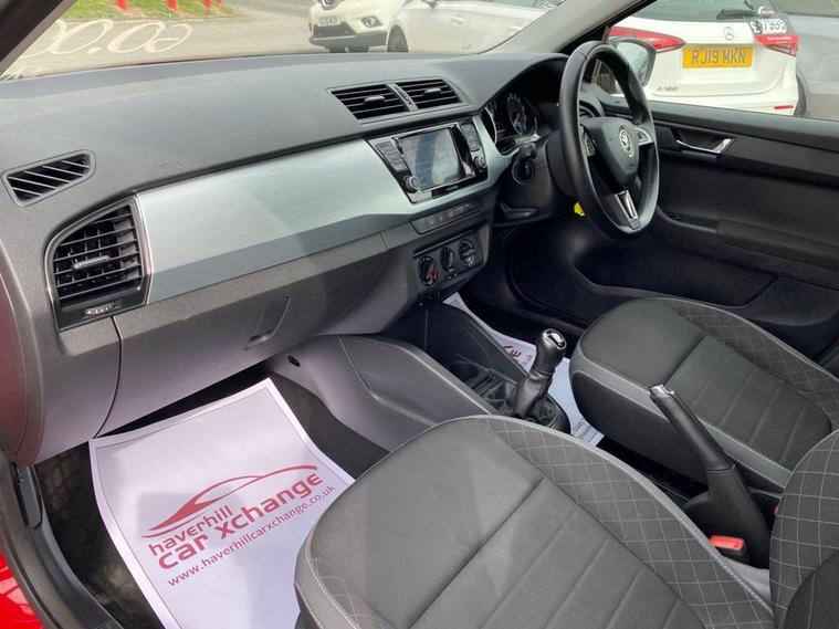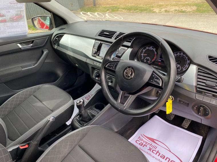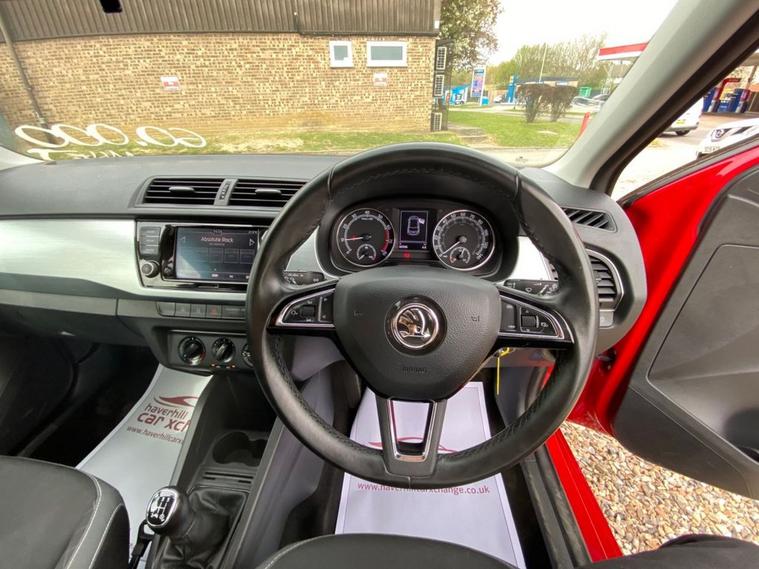 ONLY 60, 502 MILES+LONG MOT UNTIL 08.02.2027+6.5 INCH TOUCHSCREEN WHICH FEATURES DAB RADIO+AIR-CONDITIONING+LED DAYTIME RUNNING LIGHTS+PARKING ASSISTANCE+CORRIDA RED PAINT+16 INCH BLACK ALLOY WHEELS. At Haverhill Car Xchange we would like to offer you our Skoda Fabia Colour Edition Hatchback which has been finished in a Corrida Red paint with Onyx Cloth upholstery. Specification Includes a 6.5 Inch Touchscreen which features DAB Digital Radio, SmartLink Plus, Air-Conditioning, Cruise Control with Speed Limiter, Front Electric Windows, Body Coloured Bumpers/Door Handles with Black Door Mirrors and Roof, LED Daytime Running Lights, Front Fog Lights, Parking Assistance, Leather Multifunction Steering Wheel, 16 Inch Vigo Black Alloy Wheels, Power Steering, Airbags, Alarm and Remote Central Locking.