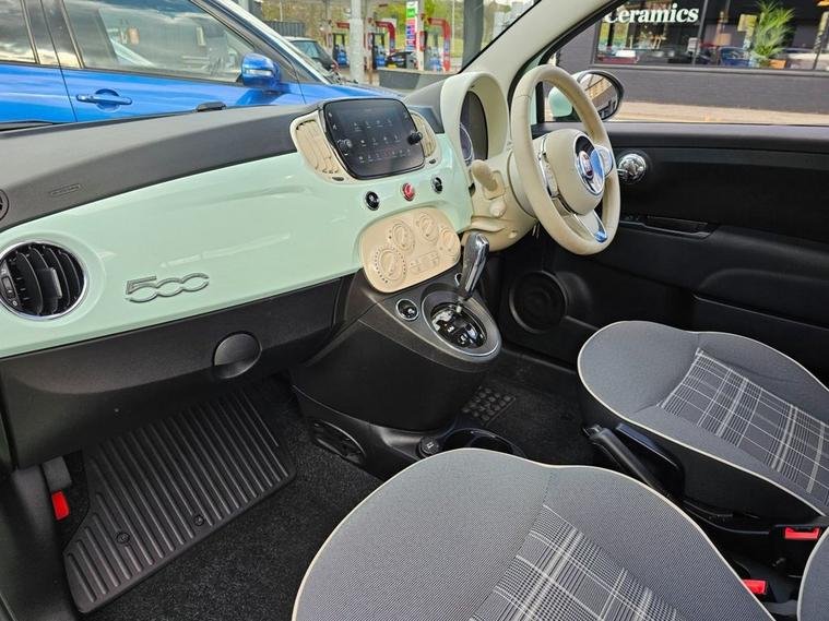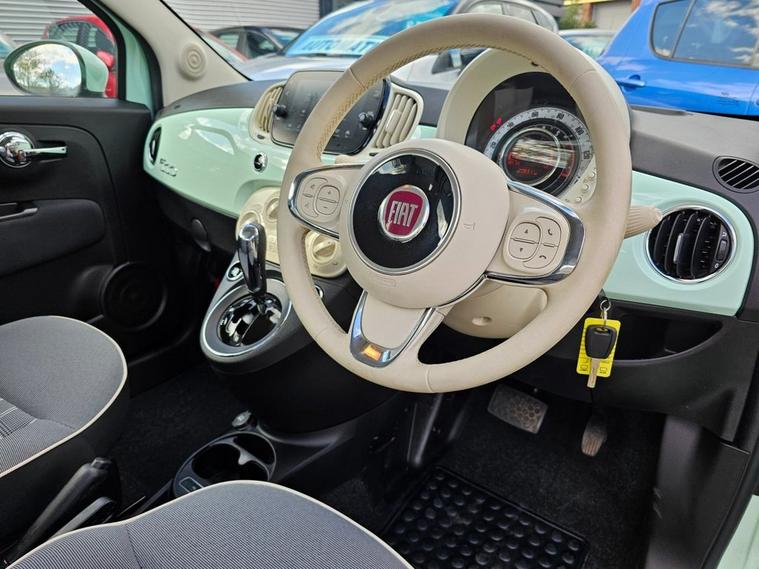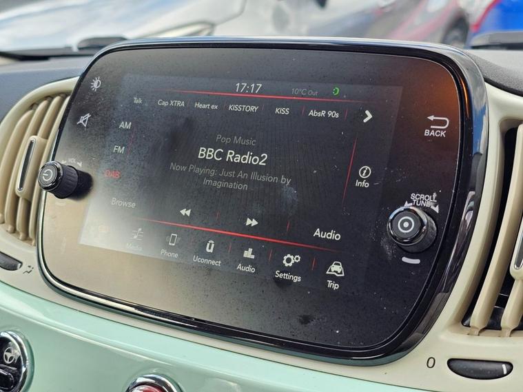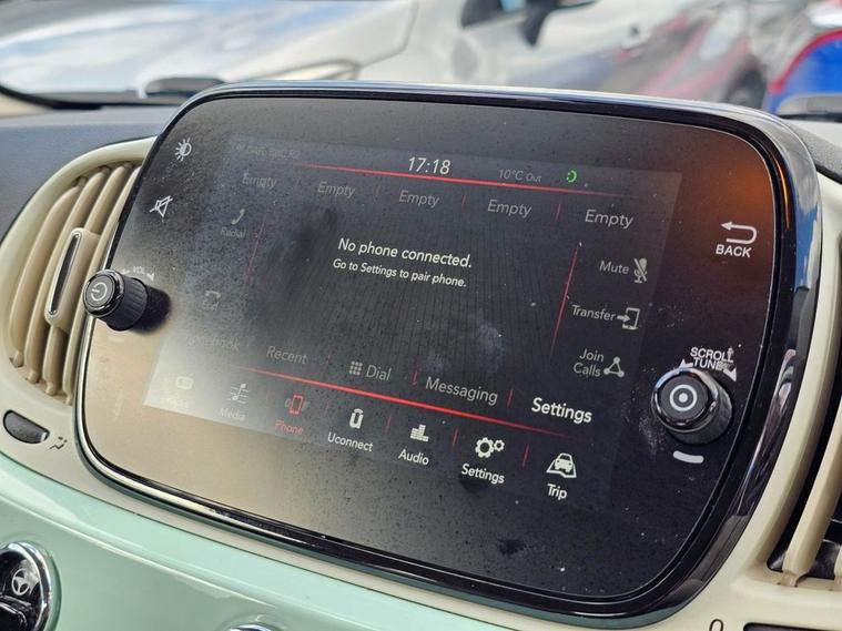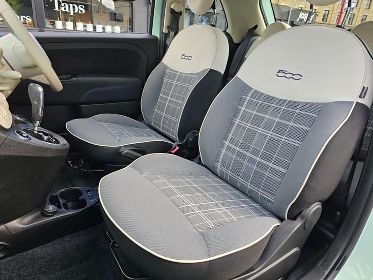 This 2019 Fiat 500 Lounge is a truly exceptional find, boasting incredibly low mileage of just 20, 000 miles from its single owner. This Euro 6 compliant 1.2L petrol model comes with a full service history, offering peace of mind for its next custodian. Inside, youll appreciate the stylish Fabric interior in Black Light Grey and Ivory, complemented by an Ivory Ambience. The Technoleather steering wheel features convenient audio and Dualogic controls, while the modern infotainment system includes Apple CarPlay and Android Auto connectivity. Comfort is further enhanced by front seats with a memory function and air conditioning, ensuring a pleasant driving experience in all conditions. This Fiat 500 Lounge stands out from other vehicles thanks to its remarkably low insurance group and low CO2 emissions, making it an economical choice for everyday driving. These factors, combined with its pristine provenance and desirable features, present a compelling package for anyone seeking a well maintained and characterful compact car.