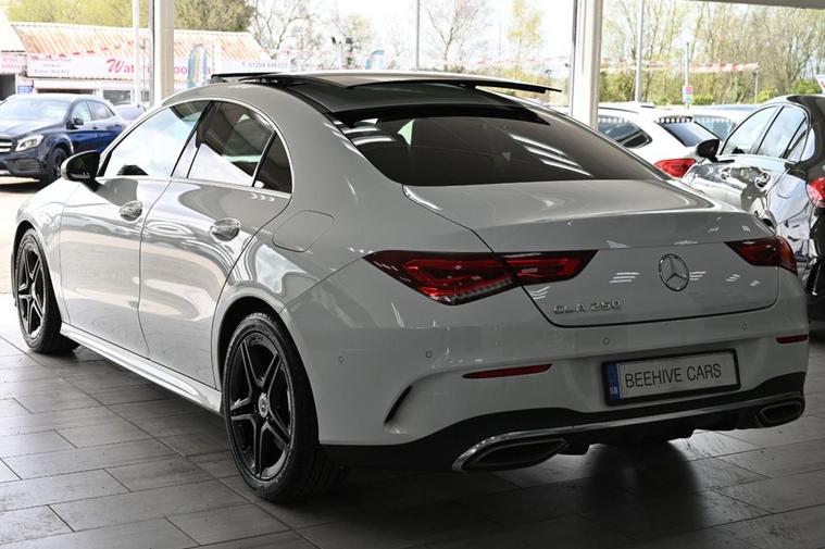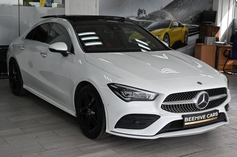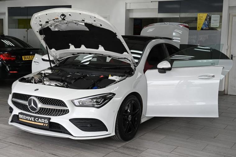DRIVE AWAY TODAY OR HOME DELIVERY TO YOUR DOORSTEP FINANCE & PART EXCHANGE ARRANGED ONLINE** 7 DAY MONEY BACK GUARANTEE** Lovely car Mercedes Cla250d amg line premium plus 2 in metallic white with service history sat nav dab radio bluetooth media usb panoramic glass roof reverse camera red and black leather seats with armrest heated seats electric folding door mirrors front and rear parking aid sensors xenon lights flat bottom steering wheel with f1 style paddleshifts eco comfort sport individual dynamic driving modes push button start stop alloys privacy