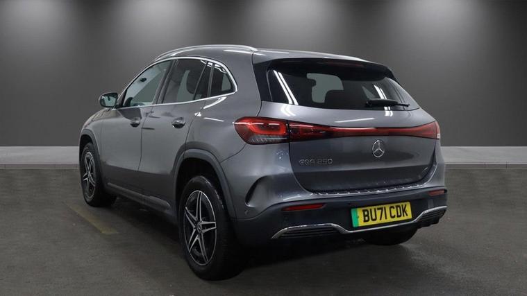 Why This Mercedes-Benz EQA Wins? This 2021 Mercedes-Benz EQA 250 AMG Line is a premium all-electric SUV that combines luxury, efficiency, and modern technology in a refined package. With just one owner from new and a 73 kWh battery offering up to 262 miles of range when new, it delivers strong real-world usability for both daily driving and longer journeys. As an EV, it provides a smooth, silent, and effortless driving experience, with instant response and no engine noiseideal for relaxed urban driving and comfortable motorway cruising. Inside, the AMG Line trim gives the cabin a sporty yet premium feel, supported by high-quality materials and a driver-focused layout. Comfort is well covered with THERMOTRONIC automatic climate control, while LED High Performance headlights ensure excellent visibility in all conditions. Blind Spot Assist adds extra confidence during lane changes and motorway driving. Practical technology is another strong point. The Parking Package with reversing camera makes tight spaces easier to manage, while the Mercedes-Benz Sound System enhances in-car entertainment with rich, clear audio. Charging is flexible and convenient. A full charge at home using a 7kW charger takes around 11 hours and 6 minutes, making overnight charging easy, while rapid charging up to 80% in just 34 minutes supports longer journeys with minimal downtime. Your Peace of Mind? - Clear vehicle history check - Optional 336-month extendable warranties - Free 12-month AA roadside assistance - Fully prepared to showroom standard with its existing MOT and servicing, and we can organise any further MOT or service enhancements at your request. - Drive Away, Insurance Available - No hidden or extra costs, like admin fees Autotraders 2024 Insights: Top 3 EQA Buyer Priorities: - Premium electric SUV feel with luxury branding - Strong electric range and practical usability - Advanced safety and comfort technology - The Mercedes EQA 250 AMG Line stands out as a refined, high-quality electric SUVoffering premium comfort, advanced tech, and smooth electric performance in a practical everyday package. Stress-Free Next Steps: - Free Part Exchange Valuation - £0 Deposit Car Finance Includes free credit checker - Reserve for £99 Fully refundable