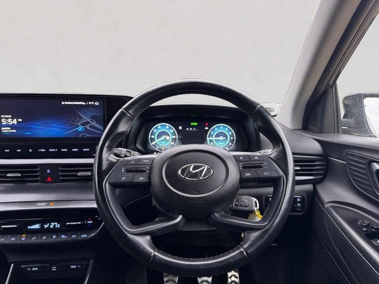 The Hyundai Bayon 1.0 T-GDi MHEV Premium SUV 5dr Petrol Hybrid Manual Euro 6 (100 ps) combines efficiency, style, and advanced technology in a compact SUV package. It features 17-inch alloy wheels, LED headlights with high beam assist, LED rear combination lights, and body-coloured bumpers and door handles. Roof rails, privacy glass for the rear windows and tailgate, and a rear spoiler with integral LED brake light complete its dynamic exterior. Inside, the Bayon offers a 10.25-inch touchscreen satellite navigation system with Android Auto and Apple CarPlay, a 10.25-inch digital instrument cluster, dual-zone climate control with front defogging, ambient blue mood lighting, a leather-wrapped steering wheel and gear knob, heated front seats, and a wireless phone charging pad. Additional comfort comes from a front centre armrest with storage, adjustable front seats, and height- and reach-adjustable steering. Safety features are comprehensive, including autonomous emergency braking with pedestrian and cyclist detection, lane keep assist, lane departure warning, driver attention alert, front and side airbags with curtain protection, ISOFIX rear child seat anchor points, seatbelt pre-tensioners, ESP, vehicle stability management, hill-start assist, and rear parking sensors with camera. For added peace of mind, if the MOT is under six months, well ensure a fresh MOT is completed before sale. The vehicle also comes with a standard three-month back-to-base warranty, with the option to extend it to a nationwide warranty for added reassurance. Nationwide delivery is also available. Finance Available Special 9.9% APR Offer We offer in-house finance with zero deposit options and flexible monthly payments. Apply in minutes and drive away the same day! For more details or to arrange a viewing, contact 02030183551 or email enquiries dealer's website
