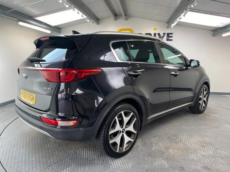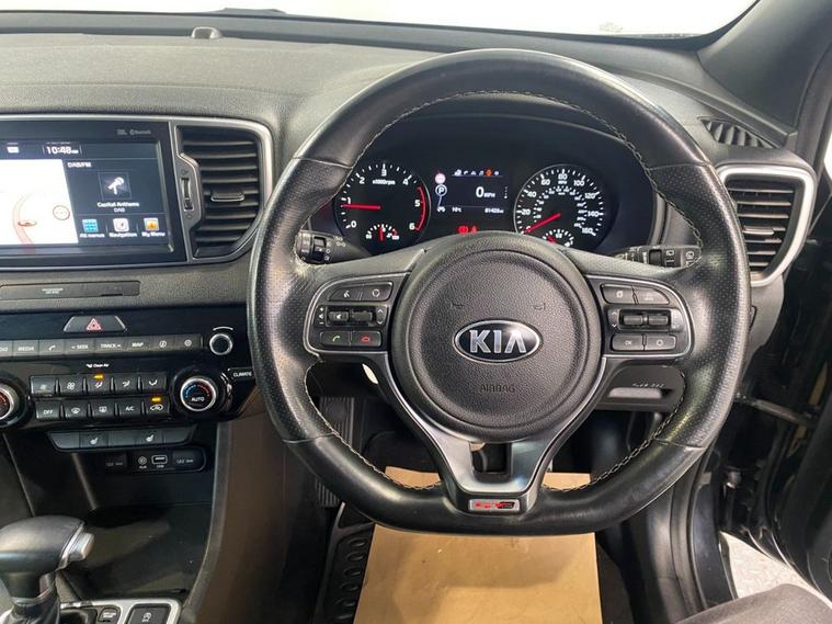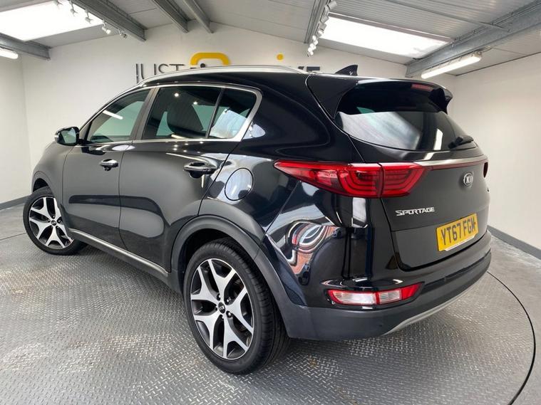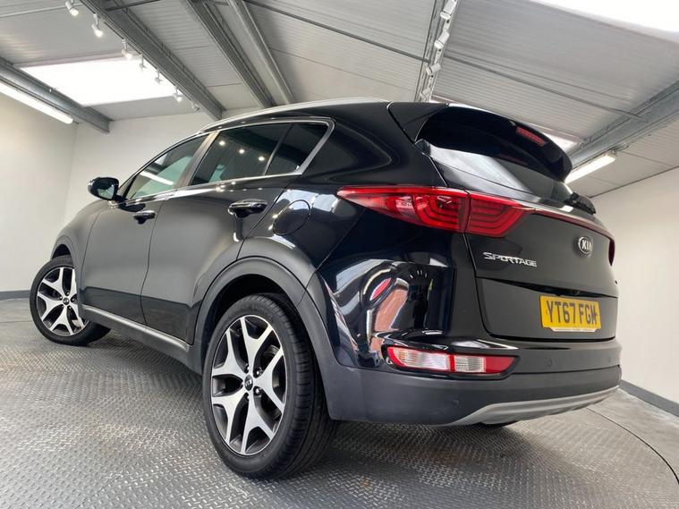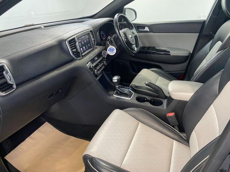 Sharp looks, an impresseive level of equipment and acres of passenger space make this reliable Sportage a great choice as your next family-friendly SUV. Its perfectly adept at city driving and equally at home on the motorway with the solid 1.7 diesel engine providing a lively 139 Bhp and its ULEZ complant so wont attract any congestion charges. City driving is a breeze with a smooth 7 speed automatic gearbox and fuel economy of up to 60 mpg.. Its fully colour coded in Phantom Black Pearl and stands on clean 19 diamond cut alloy wheels - a rear spoiler, privacy glass and some smart chrome detailing complete the sporty appearance. Moving inside the incredibly roomy cabin you find comfortable seating trimmed in 2-tone leather with the front seats benefitting from 3-stage electric heating. The touch-screen media system incorporates navigation, Bluetooth connectivity, DAB radio, Apple CarPlay and when reverse gear is engaged, a rear parking camera. Theres also front and rear park sensors and if you find yourself off the beaten track theres hill descent control. Cruise, audio and telephone can be safely and easily accessed via the leather multi-function steering wheel.