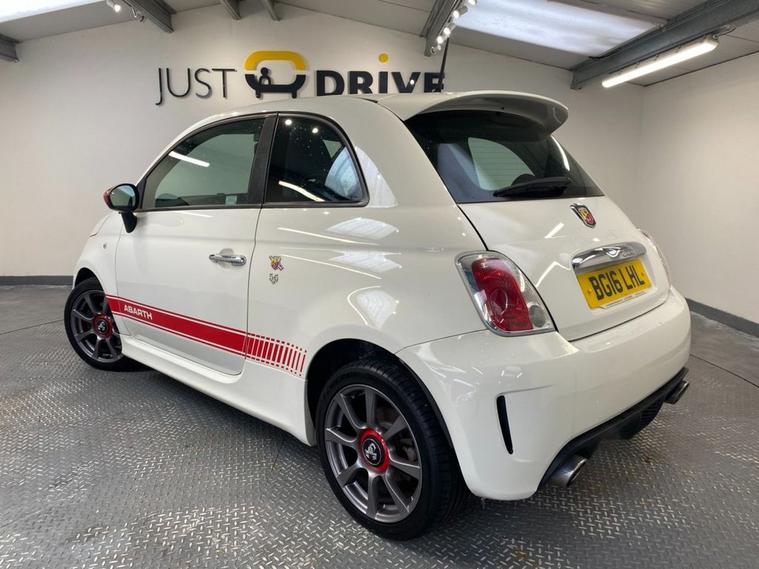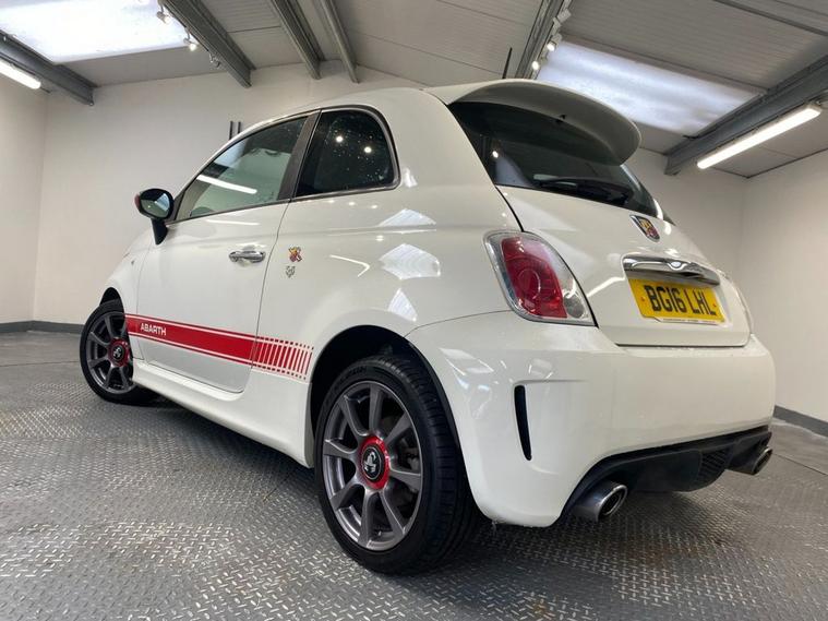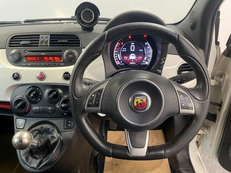 Abarth vehicles are renowned for being high-performing and powerful, but first and foremost small and agile just like the Scorpion on its badging. Its a powerful little hatch with a big voice thanks to its twin exhaust system that really growls when you activate Sport mode. In this mode throttle response and torque is boosted and the digital dash changes display too, dispensing with general information and replacing it with a working G-Force meter. Its finished in Bianco White and stands on 16 alloy wheels with a high level spoiler at the rear. Inside are sports seat which are highly supportive and theres digital air conditioning and Bluetooth with voice comand. The 1.4 T-Jet petrol engine provides 138 Bhp and in this lightweight sports car, it really does feel like it has even more power when you take it for a spin, something youll find any excuse for !